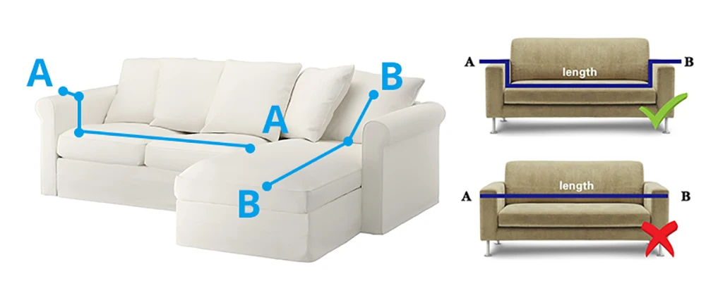 -Пожалуйста, измерьте свой диван с подлокотниками, затем выберите размер. Если вы не измеряете подлокотники, чехол для дивана будет меньше вашего дивана.