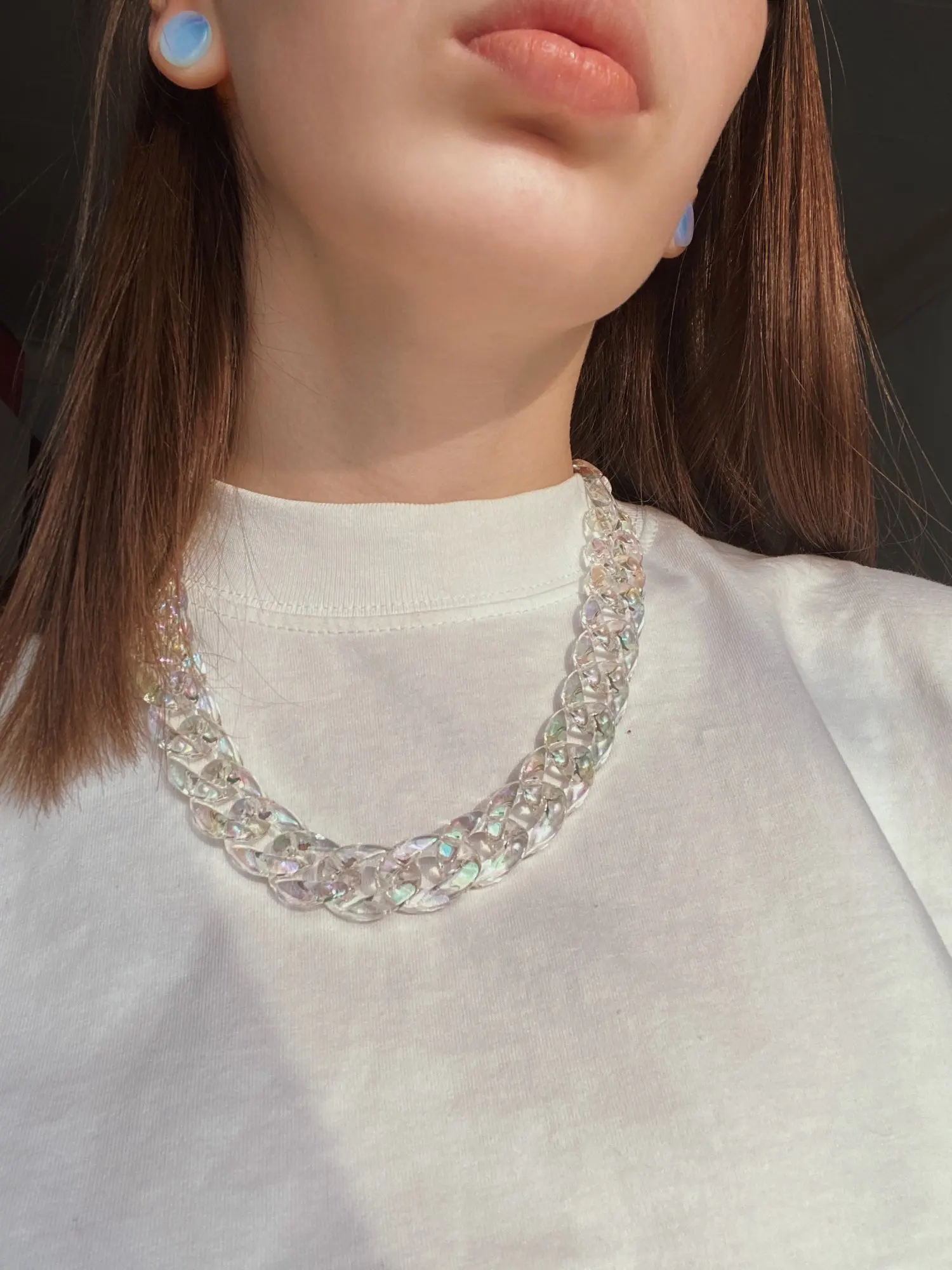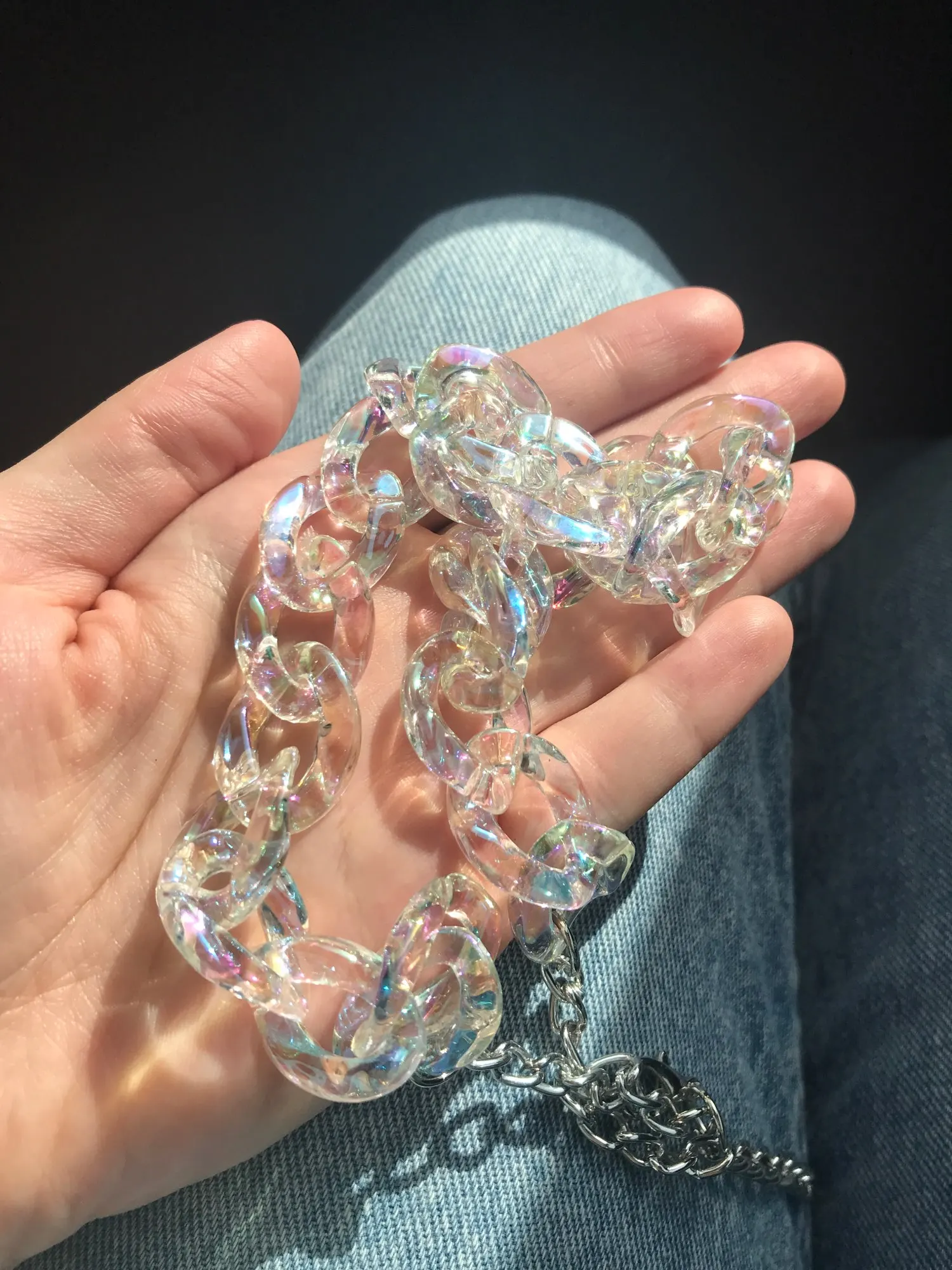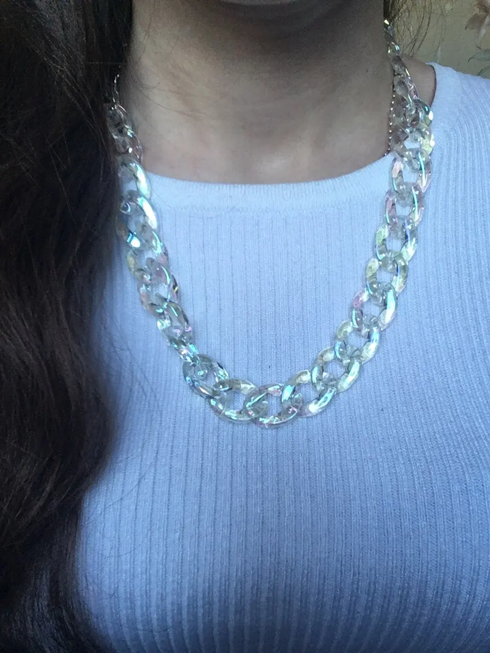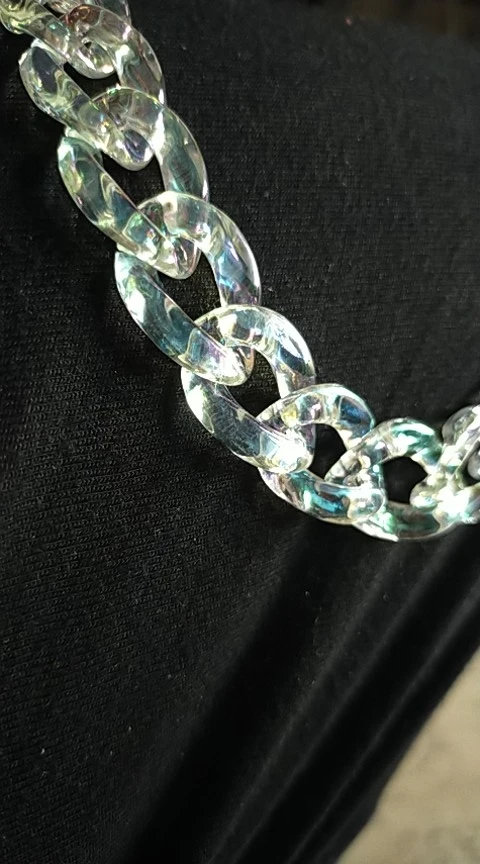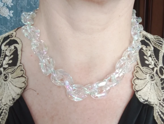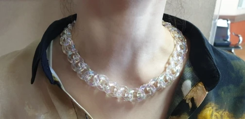 Доставка не слишком долгая, пришло чуть позже назначенного дня. Цепь очень красивая, прикольно смотрится, не тяжелая, а на солнце отдает переливные цвета. В общем, заказом довольна, все красиво.