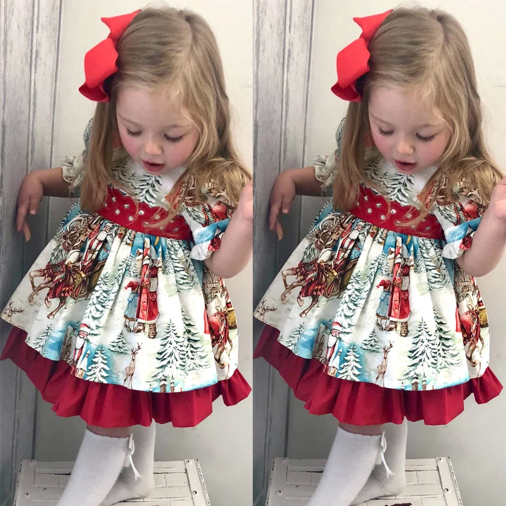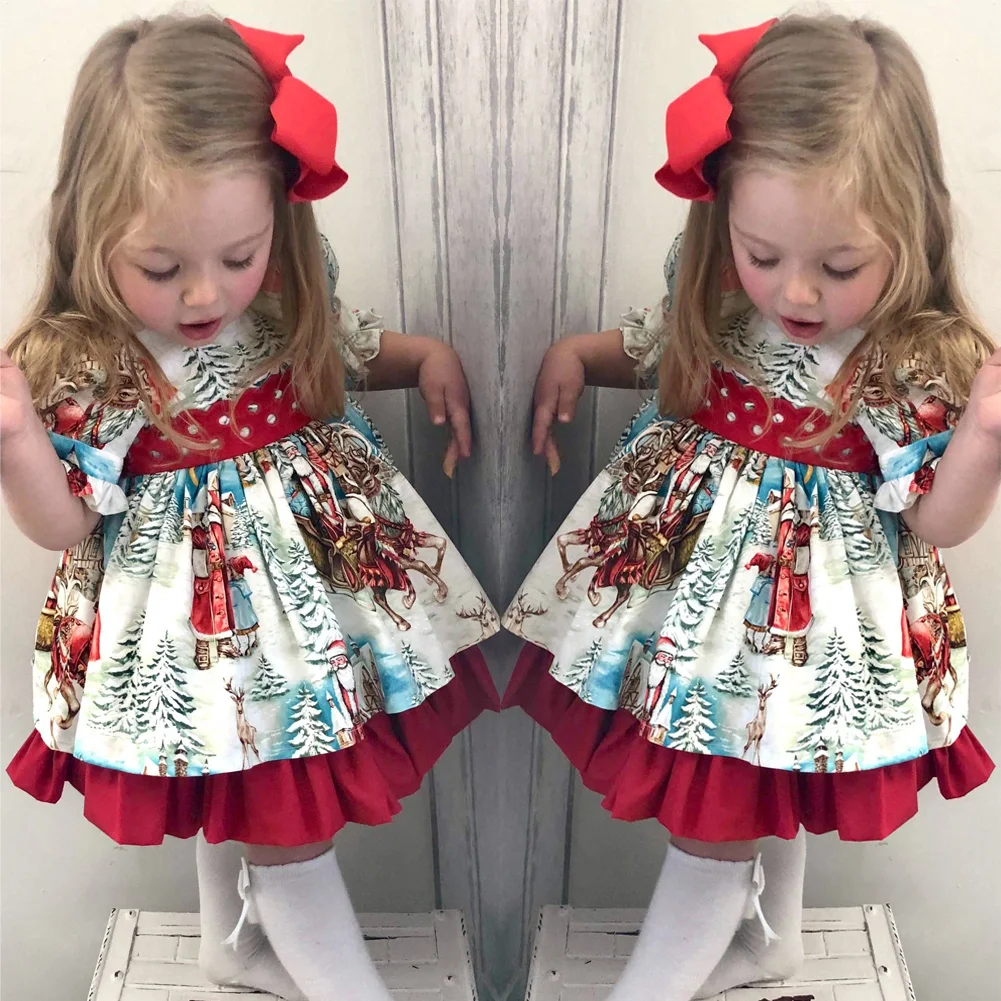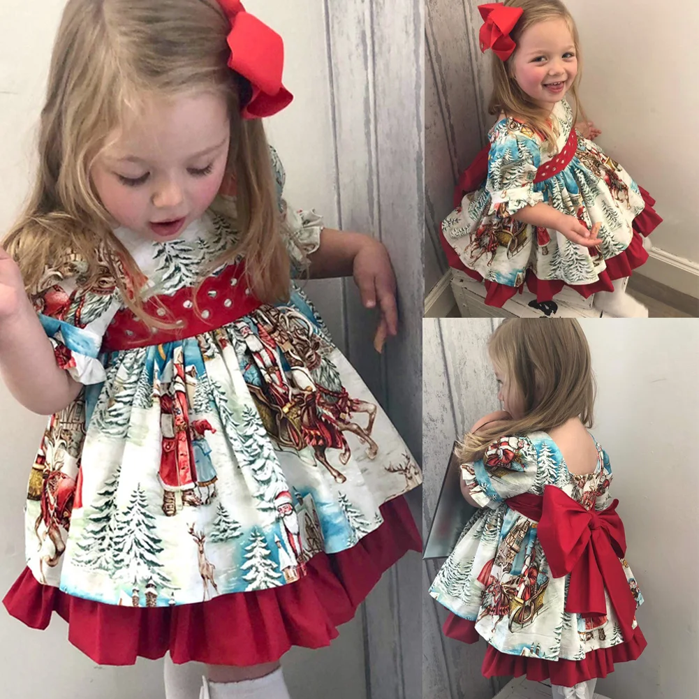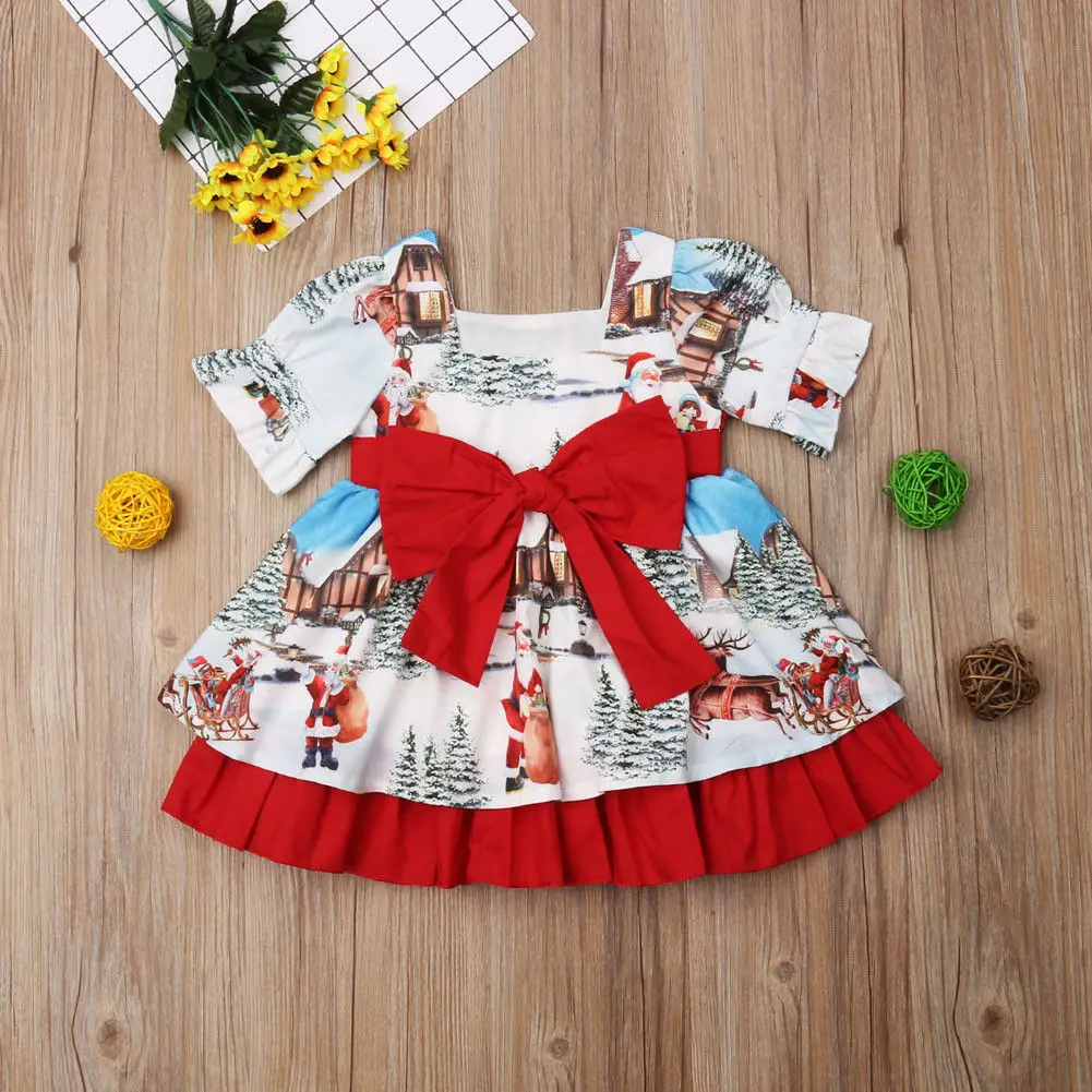 На Рождество, для детей ясельного возраста, для маленьких девочек одежда для детей праздничные рождественские вечерние Праздничное платье Санта Клаус свободные платья с украшением в виде банта