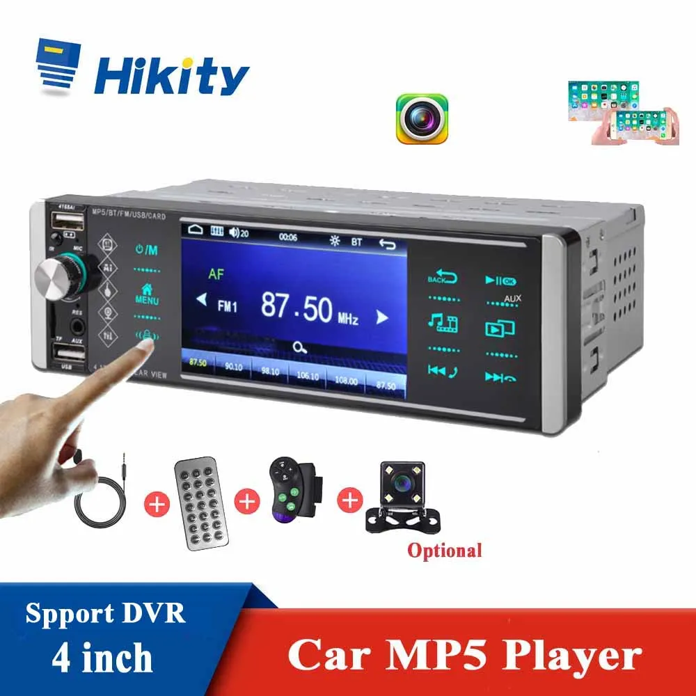 4-дюймовый MP5-плеер 1DIN, сенсорный Bluetooth автомобильный радиоприемник, двунаправленное подключение, RDS, AM, FM, 4 USB, поддержка ISO, Android Mirrorlink