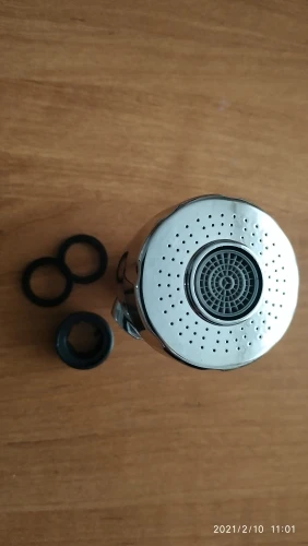 В комплекте также идет переходник с внутренний резьбы на наружную, мне не понадобился, а кому-то возможно будет не лишним. "Дождик" реально позволяет экономить воду при ручной помывке посуды. Посылка шла не очень долго. Продавца рекомендую