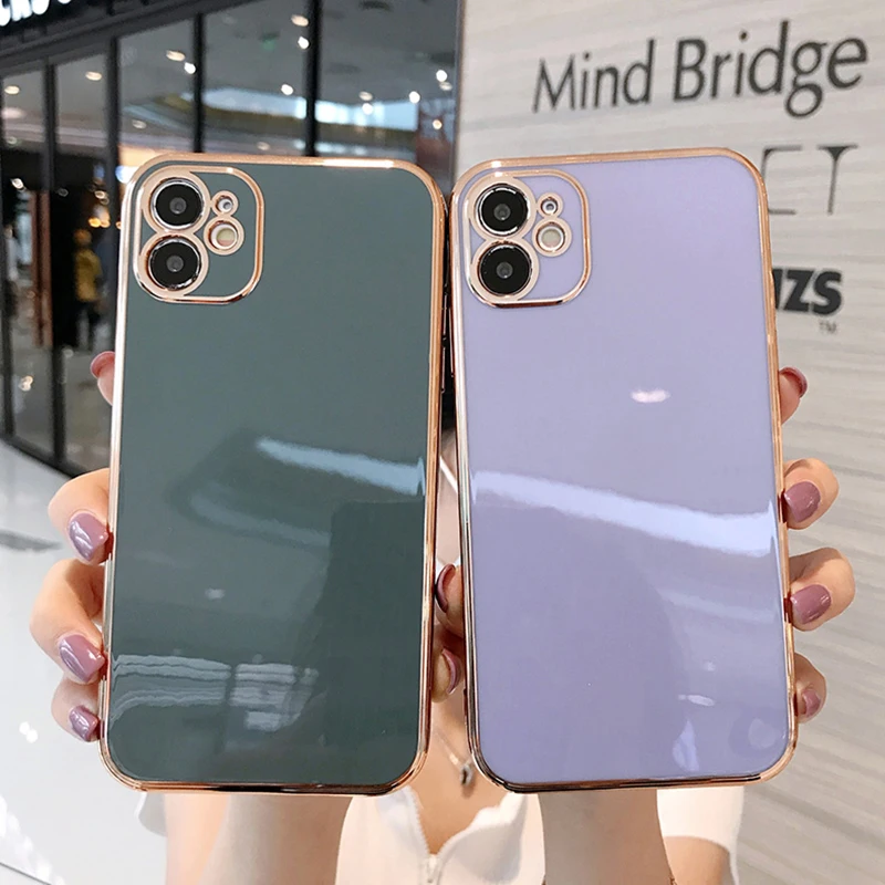 Feature 8Square Plating Shockproof Phone Case Luxury Soft Silicone Full Cover