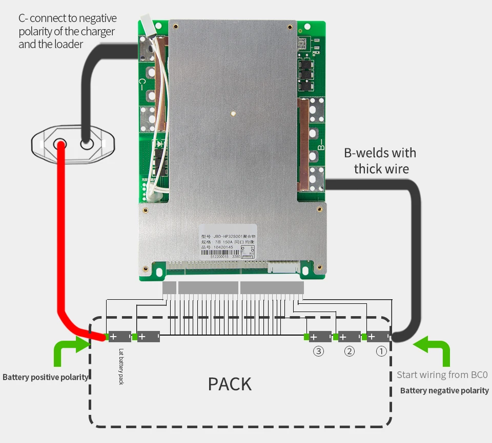 B-Подключите первую нитку отрицательного полюса аккумуляторного блока, это полный отрицательный полюс аккумуляторного блока C-подключение к зарядке и разрядке отрицательных полюсов BC1 Подключите первую нитку положительного полюса аккумуляторного блока BC2 Подключите второй шнур положительного полюса аккумуляторного блока BC3 Подключите 3-ю нитку положительного полюса аккумуляторного блока BC4 Подключите 4-ю нитку положительного полюса аккумуляторного блока BC5 Подключите 5-ю нитку положительного полюса аккумуляторного блока BC6 Подключите 6-ю нитку положительного полюса аккумуляторного блока BC7 Подключите 7-ю нитку положительного полюса аккумуляторного блока BC8 Подключите 8-ю нитку положительного полюса аккумуляторного блока BC9 Подключите 9-ю нитку положительного полюса аккумуляторного блока BC10 Подключите 10-ю нитку положительного полюса аккумуляторного блока BC11 Подключите 11 нитку положительного полюса аккумуляторного блока BC12 Подключите 12-ю нитку положительного полюса аккумуляторного блока BC13 Подключите 13-ю нитку положительного полюса аккумуляторного блока BC14 Подключите 14-ю нитку положительного полюса аккумуляторного блока BC15 Подключите 15-ю нитку положительного полюса аккумуляторного блока BC16 Подключите 16-ю нитку положительного полюса аккумуляторного блока BC17 Подключите 17-ю нитку положительного полюса аккумуляторного блока BC18 Подключите 18-ю нитку положительного полюса аккумуляторного блока BC19 Подключите 19-ю нитку положительного полюса аккумуляторного блока BC20 Подключите 20 нитку положительного полюса аккумуляторного блока Общий положительный полюс аккумуляторной батареи