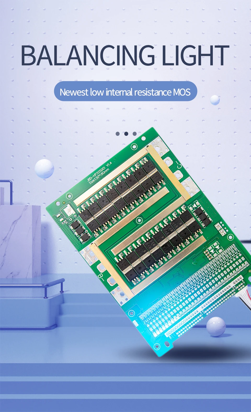 Lifepo4 bms Диапазон рабочего напряжения: 42-75 в Рабочий ток (макс.): 150A Защита от избыточной зарядки напряжение: 3,75 ± 0,05 V Защита от избыточной разрядки напряжение: 2,1 ± 0,1 V Сбалансированный включения напряжение: 3,6 ± 0,05 V Значение защиты температуры зарядки: 75 ± 5 ℃ Внутреннее сопротивление:<20mΩ