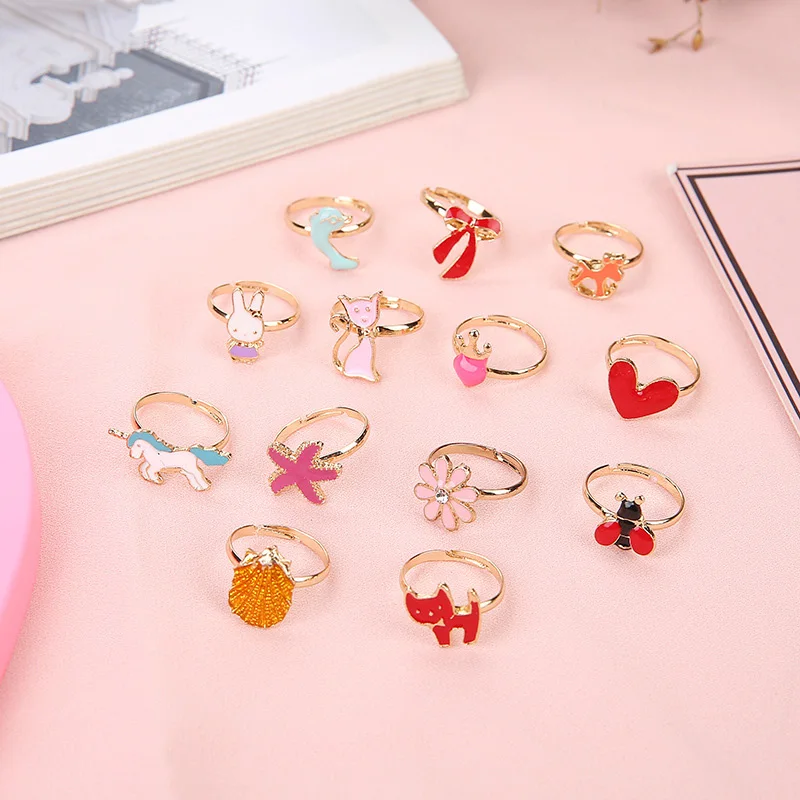 12 милых мультяшных детских колец, корейский океанический цветок, регулируемые детские кольца для девочек, милые детские милые подарки, модные украшения