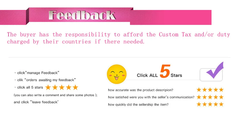 1. Мы поддерживаем высокие стандарты качества и стремимся к 100% удовлетворенности клиентов! Отзывы очень важны, мы просим Вас немедленно связаться с нами, прежде чем дать нам нейтральные или негативные отзывы, чтобы мы могли удовлетворительно решить ваши проблемы. Невозможно решить проблемы, если мы о них не знаем!