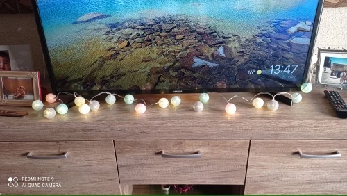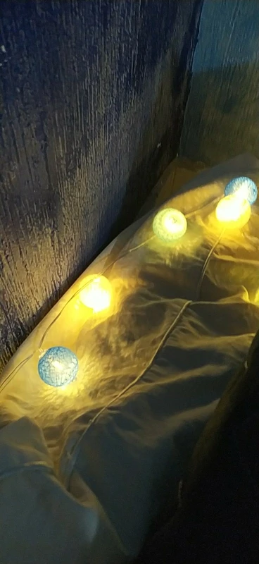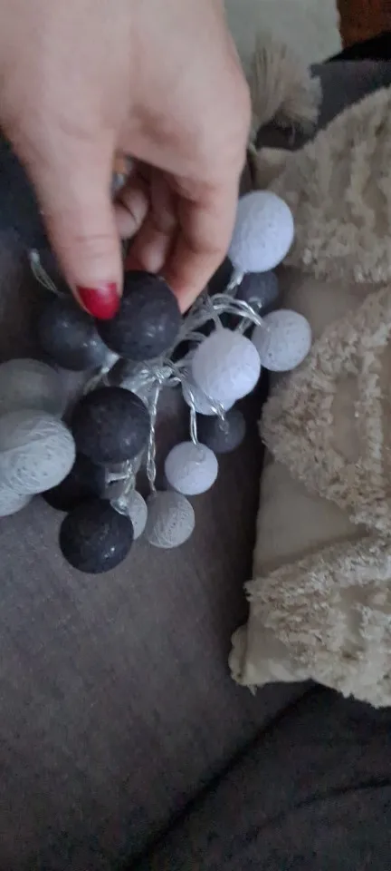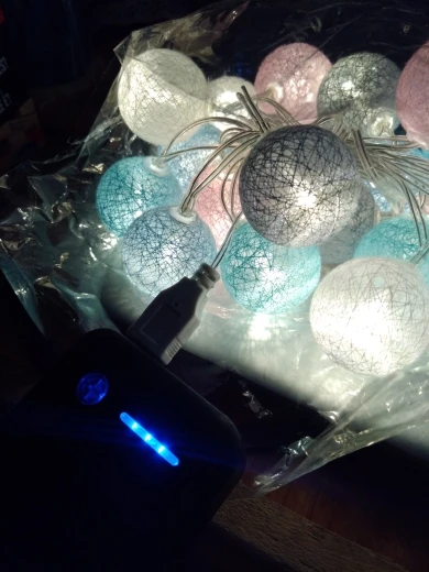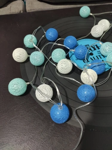 Товаром довольна но пришло не то что я заказывала пришел другой цвет в интерьер он подписался так что я не стал открывать спор как продавца советую но нужно связаться с ним и точно узнать какой же придёт цвет потому что мне пришел не тот который я заказала а так всё хорошо всё светится все красиво и все прям так на картинке Ещё думала он будет больших размеров шарики они пришли маленьких гирлянда очень длинная растянулась на почти 2 м
