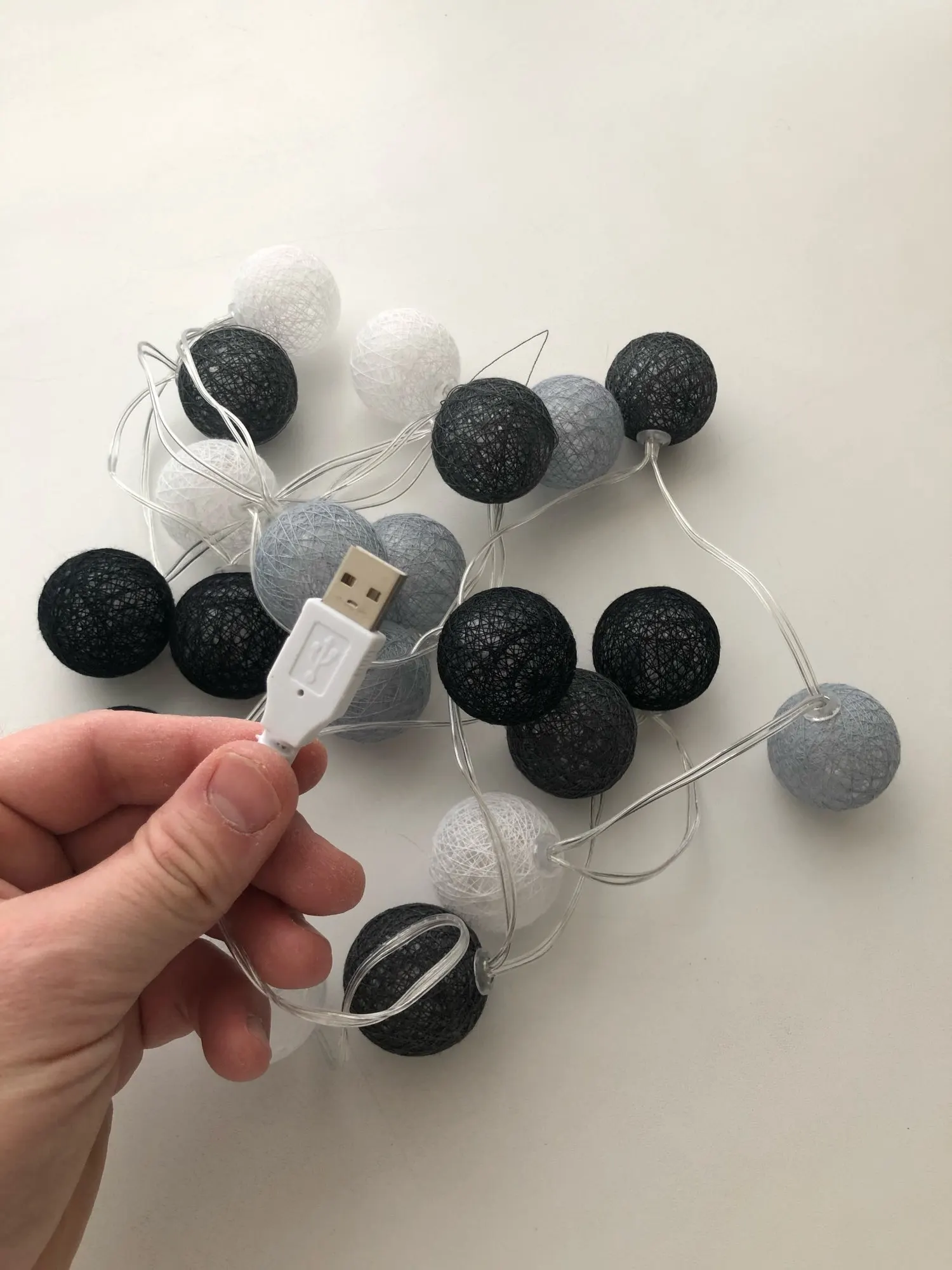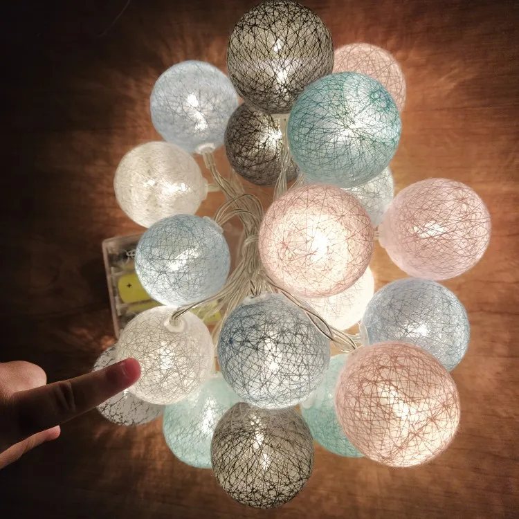 Гирлянда из 20 светодиодных хлопковых шариков, Рождественская сказочная осветительная цепочка для улицы, праздника, свадьбы, Рождества, вечеринки, украшение для дома