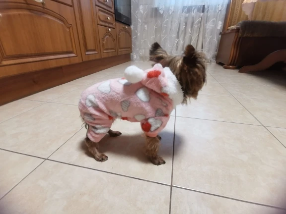 К сожалению при ходьбе задняя резинка стягивает комбез на попу собаки и закрывает хвост( в туалет не сходить), а так комбинезон удобный, но придётся немного доработать. Собачка довольна.