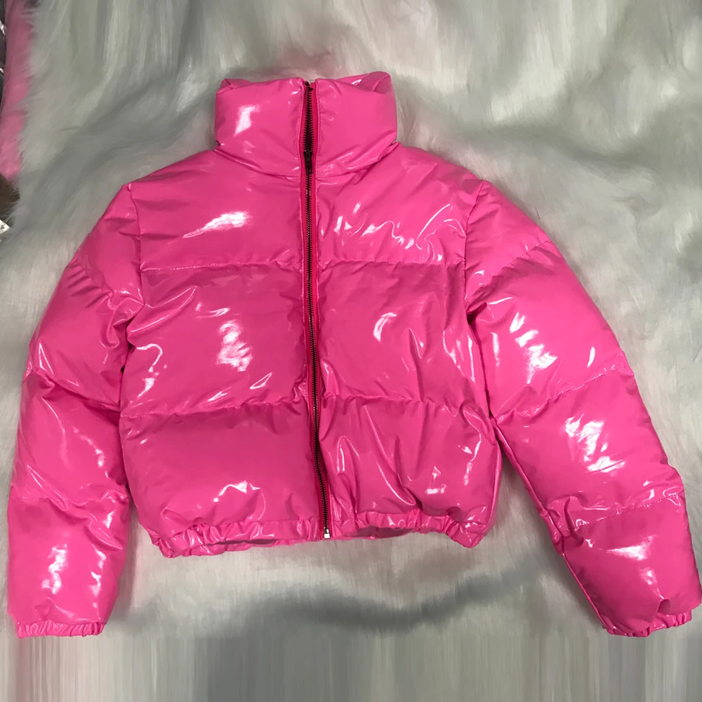 Зимнее 100%, женская обувь из искусственной кожи; Куртки-пуховики теплая милое Дутое пальто яркие парки на пуху с застежкой-молнией и со стоячим воротником укороченная куртка