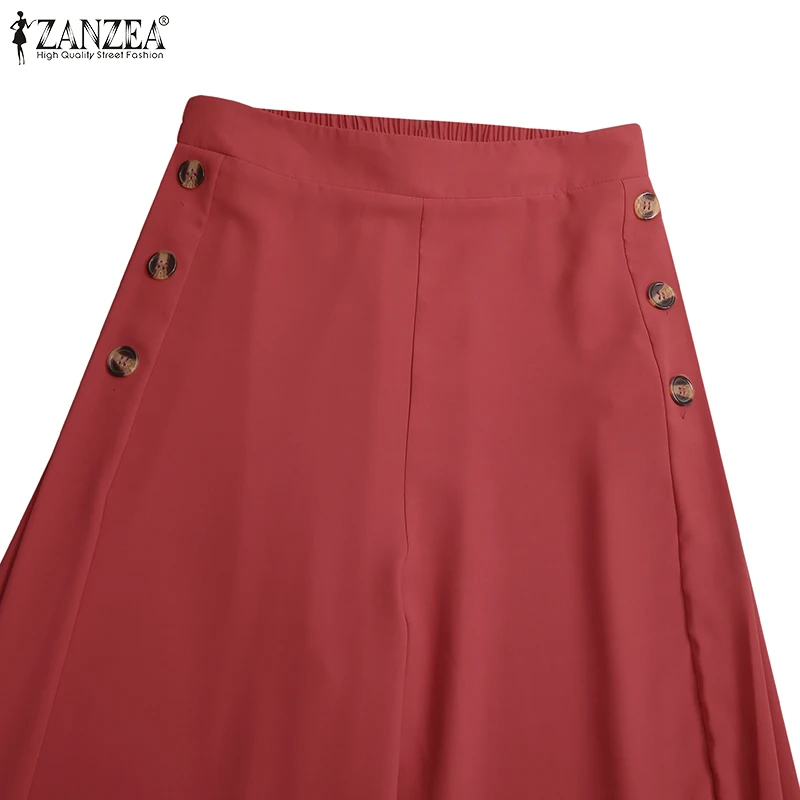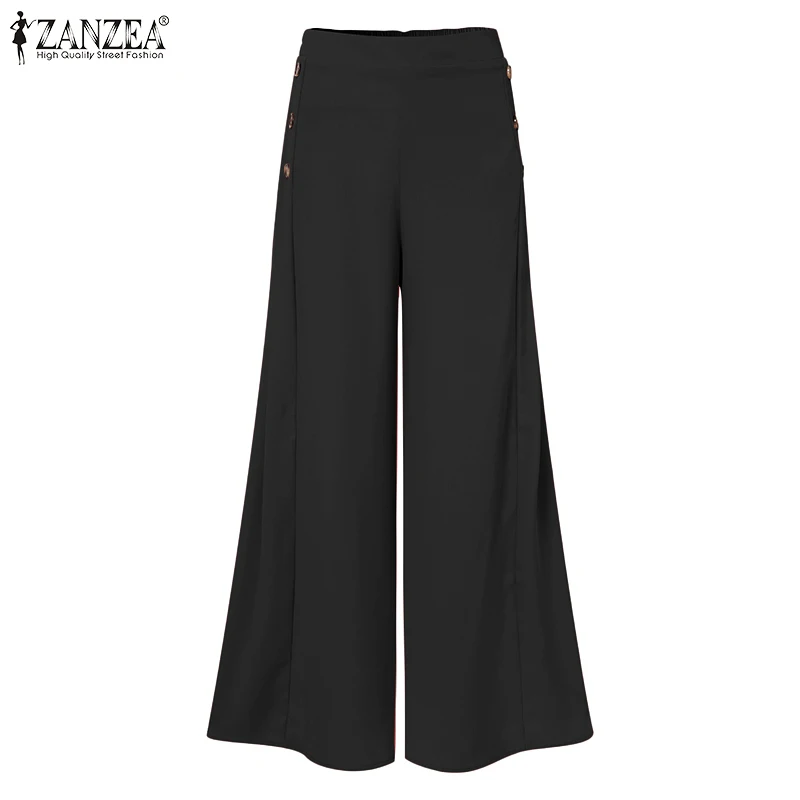 Брюки женские осенние с широкими штанинами, на пуговицах, с эластичным поясом