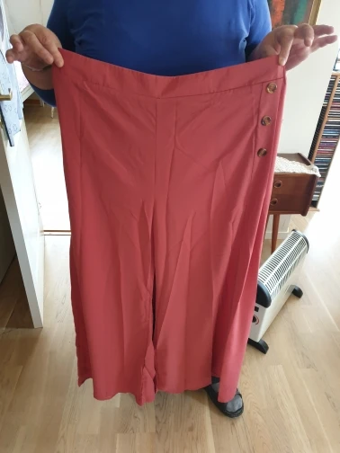 3ème pantalon commandé et reçu, très satisfaite, matière agréable légère fluide taille habituelle : 42 commandé du L élastique à la taille