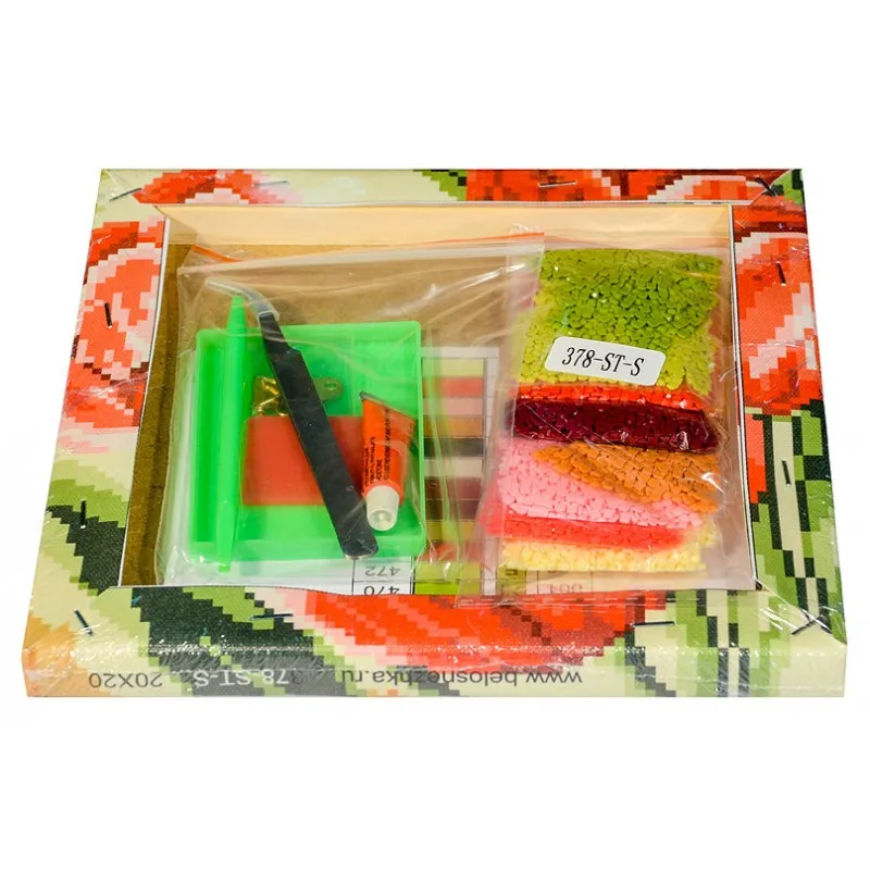 Создайте свой рукотворный шедевр с помощью набора для творчества “Алмазная мозаика”. Выложите прекрасную картину из множества маленьких цветных алмазных камушков, постепенно заполняя ряд за рядом из-под ваших рук будет появляться чудесное переливающееся изображение. Каждый камушек выполнен из прочного материала, огранен по типу драгоценных камней и при попадании на грани солнечного или искусственного света образуется мерцающие полотно. Процесс создания алмазной картины – это увлекательное занятие для детей и взрослых, немного тренировки, и вы станете настоящим мастером. Комплектация: 1. Основа картины - холст с нанесенной схемой на подрамнике 2. Комплект квадратных камней с огранкой 2,5* 2,5 мм. 3. Пластмассовый лоток с ячейками 4. Пинцет металлический 5. Крепления для подвеса на стену 6. Дополнительный тюбик клея 7. Листовка-ключ к схеме Характеристики: Серия - цветы Размер – 20*20 см. Тип выкладки – 100% заполнение Форма камней - квадратные 2,5*2,5 мм, 9 и 13 граней Количество цветов – 12 Упаковка – картонная коробка Торговая марка – Белоснежка Страна производства - Китай