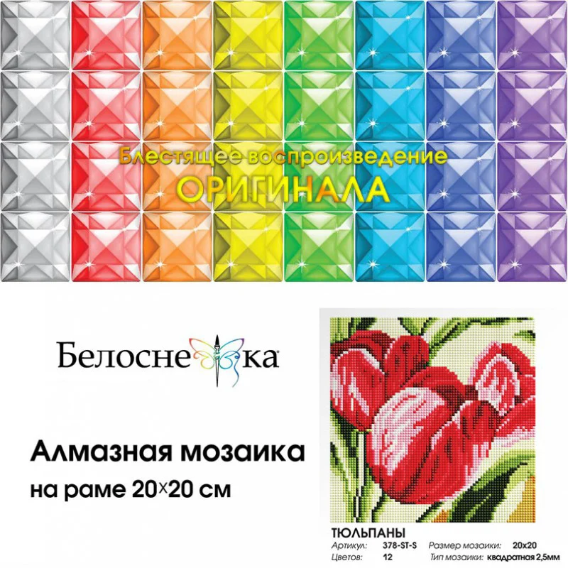 "Тюльпаны" Алмазная мозаика на подрамнике 20*20. Белоснежка. 378-ST-S