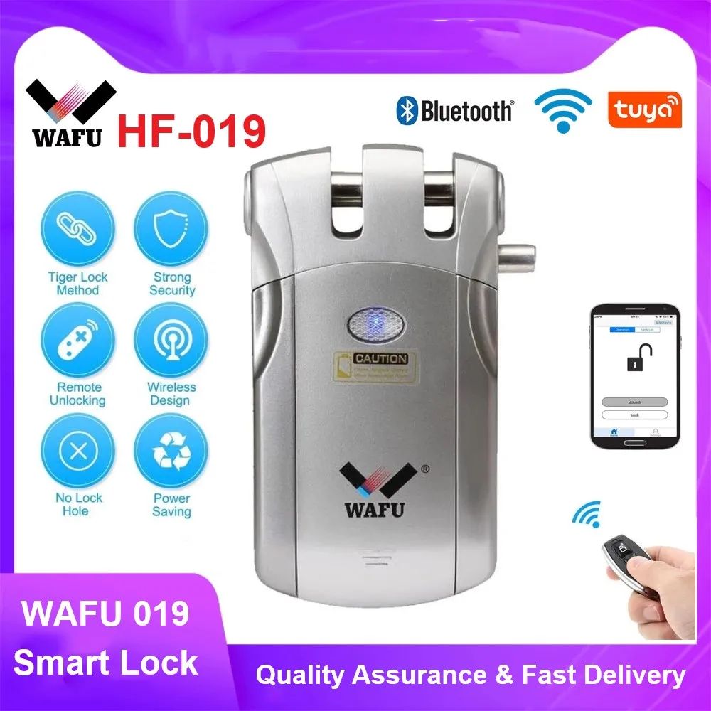 Умный Замок Wafu 019, беспроводной, Wi-Fi, bluetooth, tuya, дистанционное управление через приложение, электронный замок без ключа для дверей, невидимый замок, 433 МГц, управление телефоном