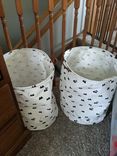 Очень мило. Я в восторге. Они остаются прямыми, даже если они пустые и имеют водонепроницаемый слой внутри. Я использую их как грязные корзины одежды, и они великолепны!