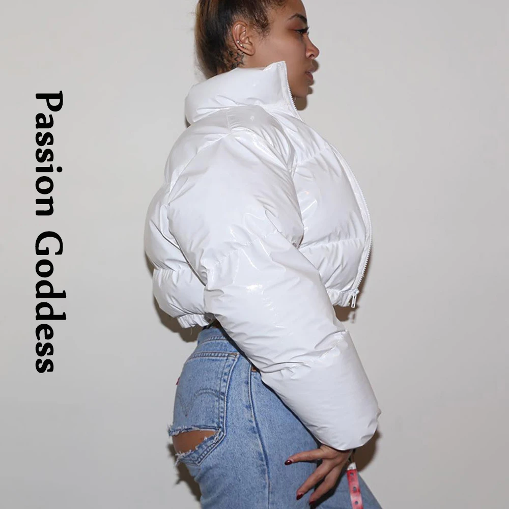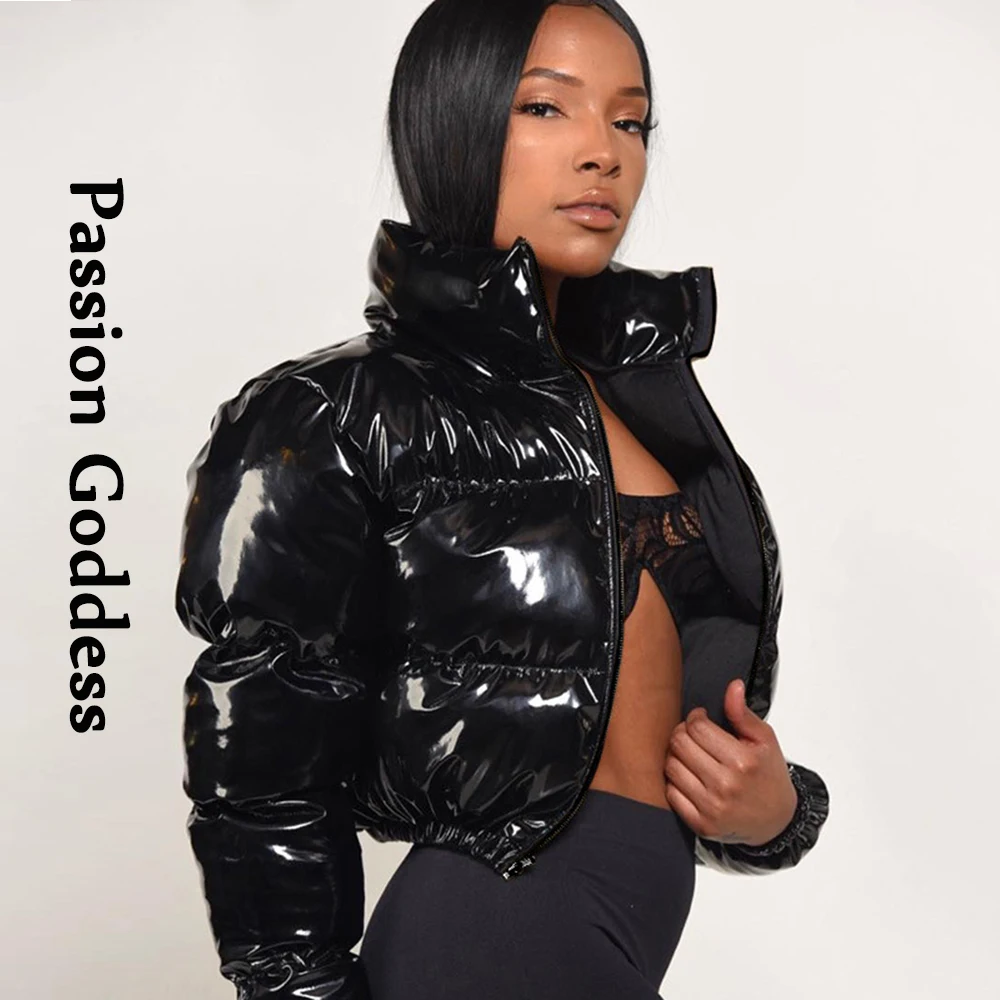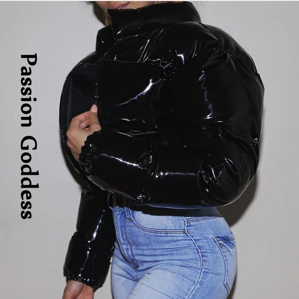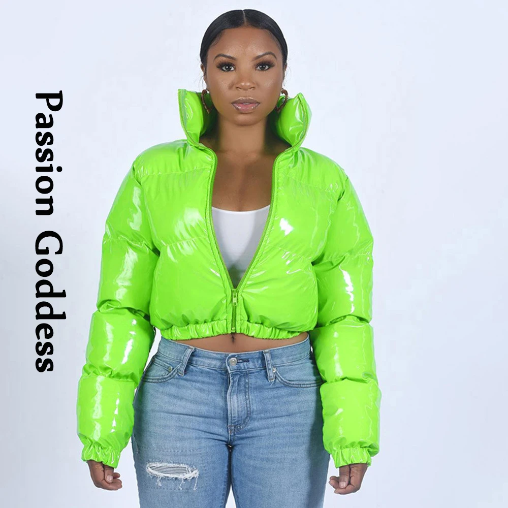 100% яркие куртки-пуховики из искусственной кожи женские зимние теплые милые пуховики яркие парки на молнии с воротником-стойкой укороченные куртки