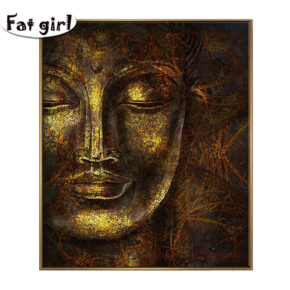 Полностью Квадратный бриллиант, 5D картина круглая Стразы Будда вышивка мозаика вышивка крестиком Золотая стена искусство религия подарки