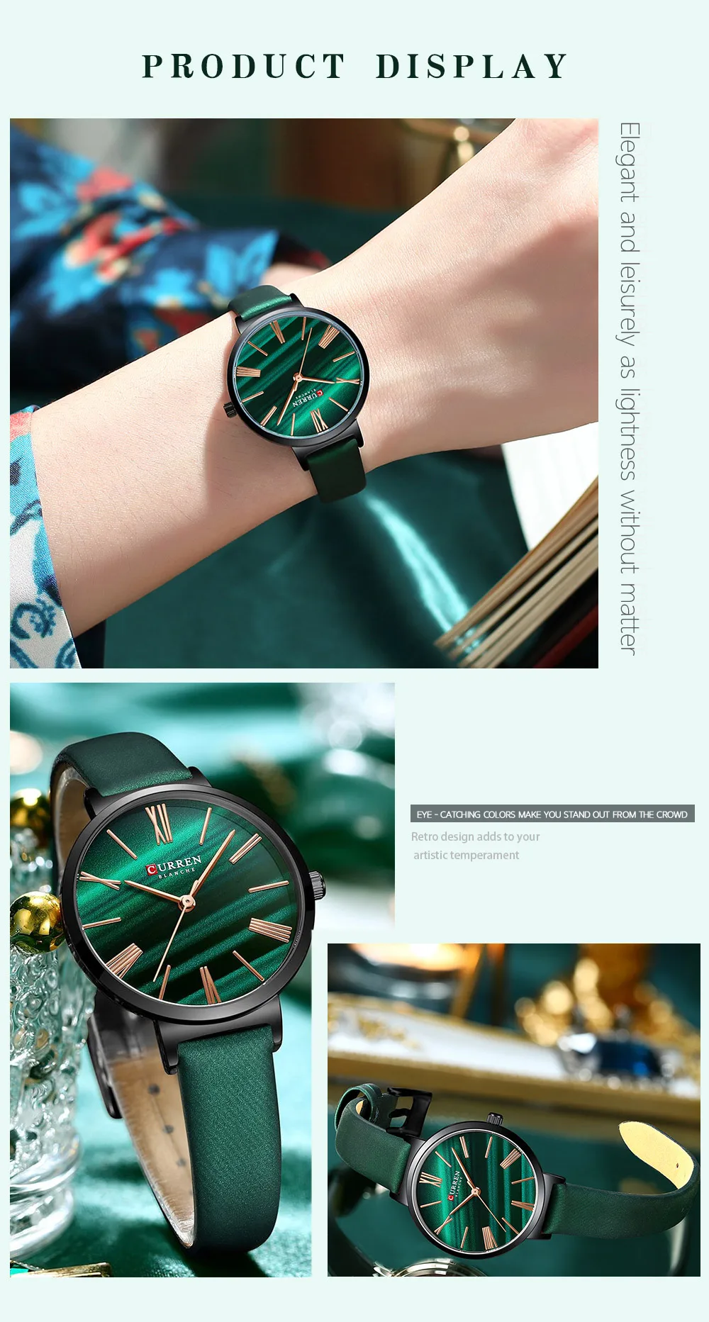 Часы CURREN женские кварцевые с кожаным ремешком, модные роскошные ...