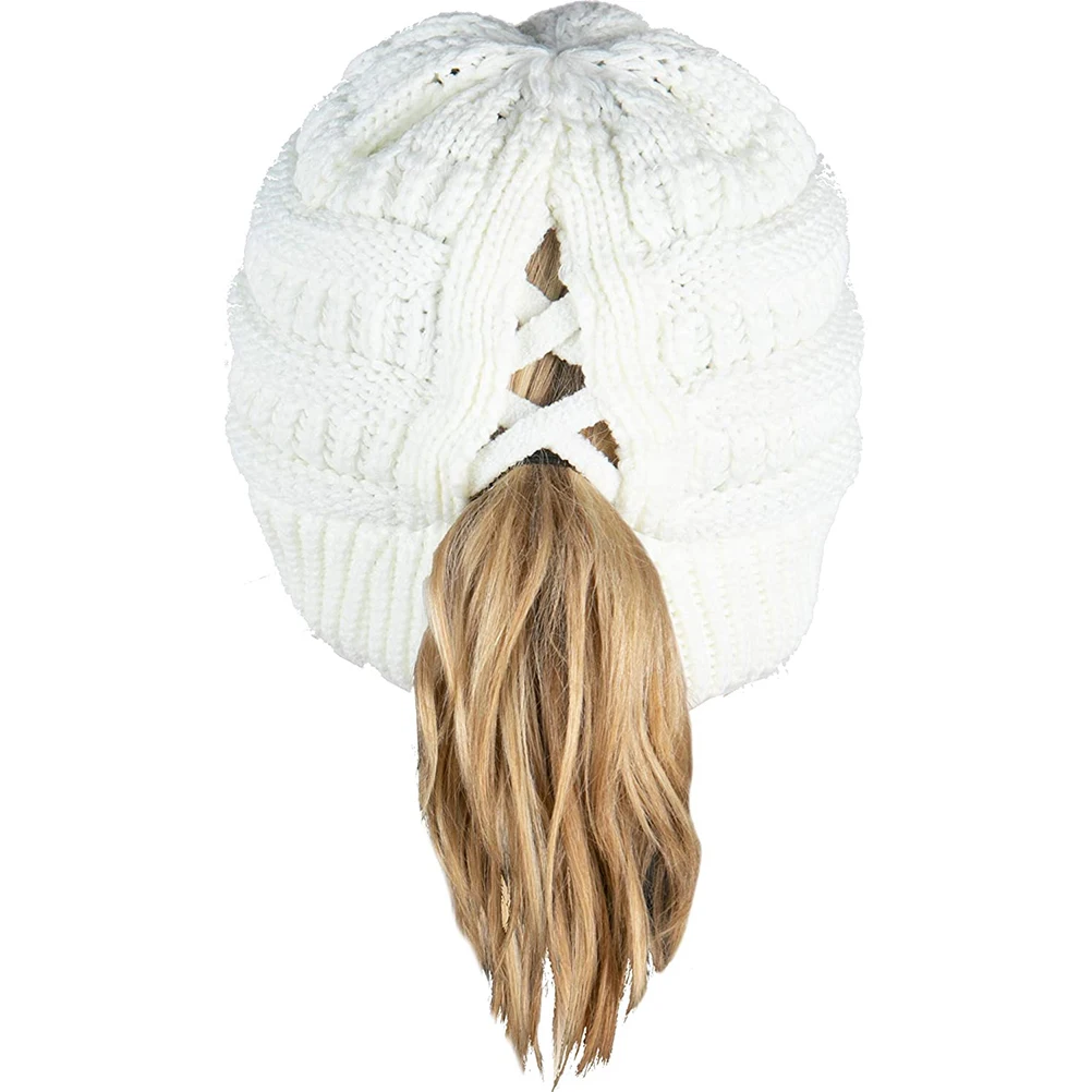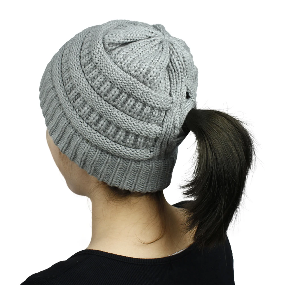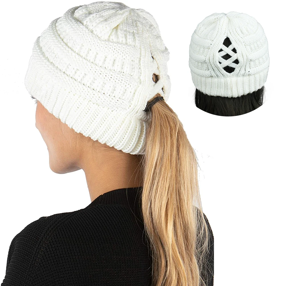 Подходящий Размер: один размер подходит для большинства взрослых, эластичная вязаная шапка с отверстием для хвоста, которая может легко завязывать волосы.