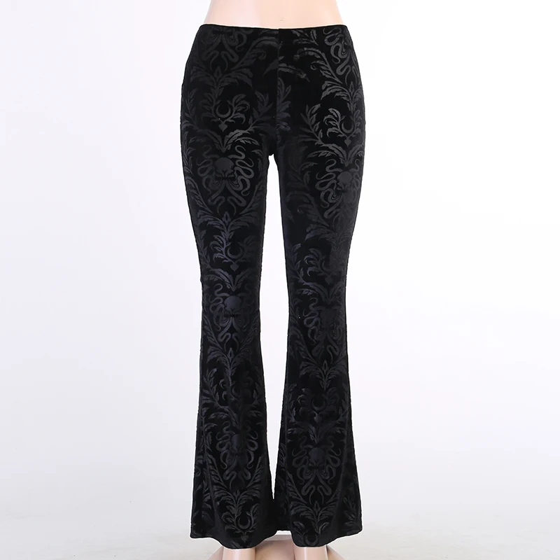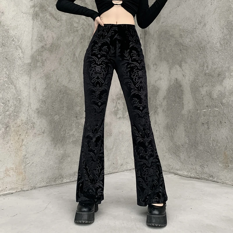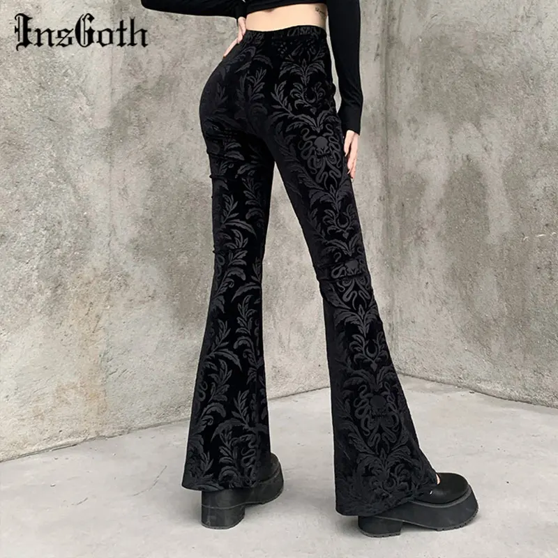 Брюки InsGoth женские в стиле ретро, готический принт, черные брюки-клеш с завышенной талией, в стиле панк, брюки в готическом стиле