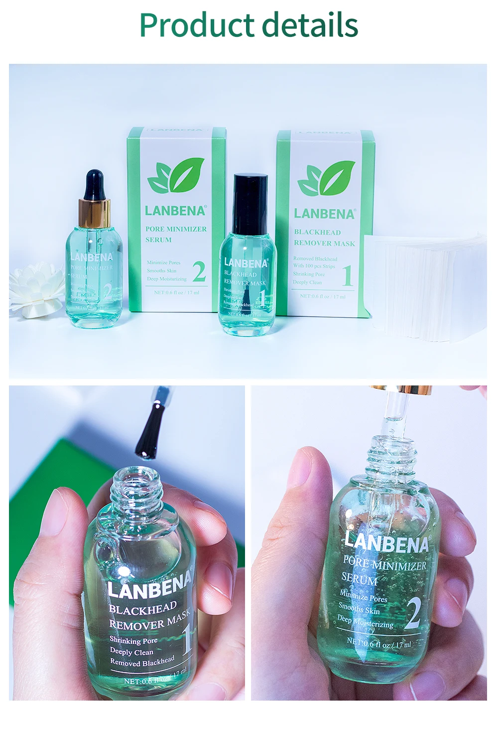 Средство для удаления черных точек и грубых пор Step1 LANBENA маска для удаления черных точек-впитывает грязь пор-высасывает акне-Удаляет излишки масла-улучшает тусклую и огрубевшую кожу-делает кожу свежей и гладкой Step2 LANBENA Pore Minimizer сыворотка-минимизирует поры-разглаживает кожу-глубокое увлажнение