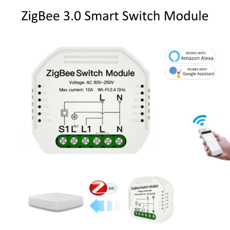 Умный прерыватель Tuya ZigBee, модуль переключателя с Wi-Fi, с поддержкой Alexa, Amazon, Google Home