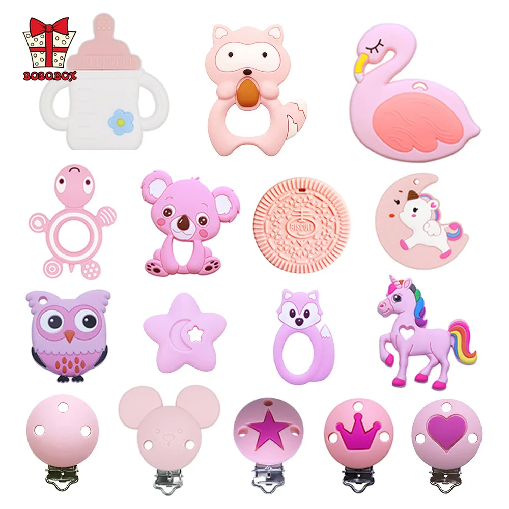 Прорезыватель для зубов BOBO.BOX, силиконовый, в виде животных, не содержит бисфенола А, ожерелье для прорезывания зубов, игрушка, лиса, коала, сова, пищевой силикон, соска с бусами зажим