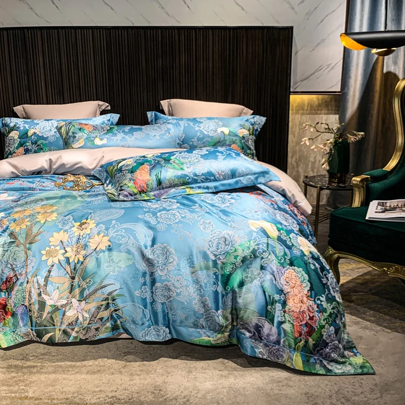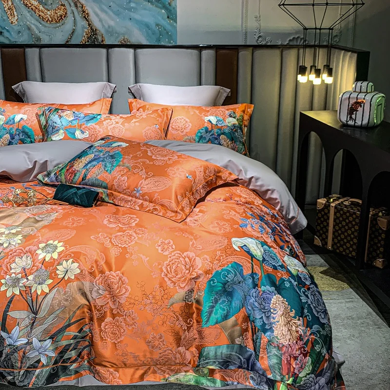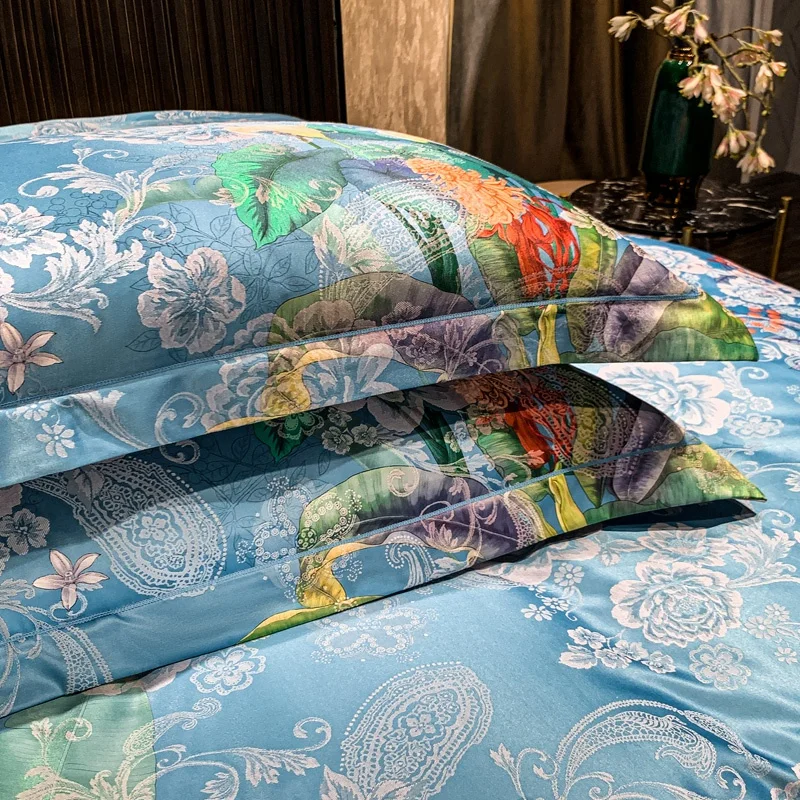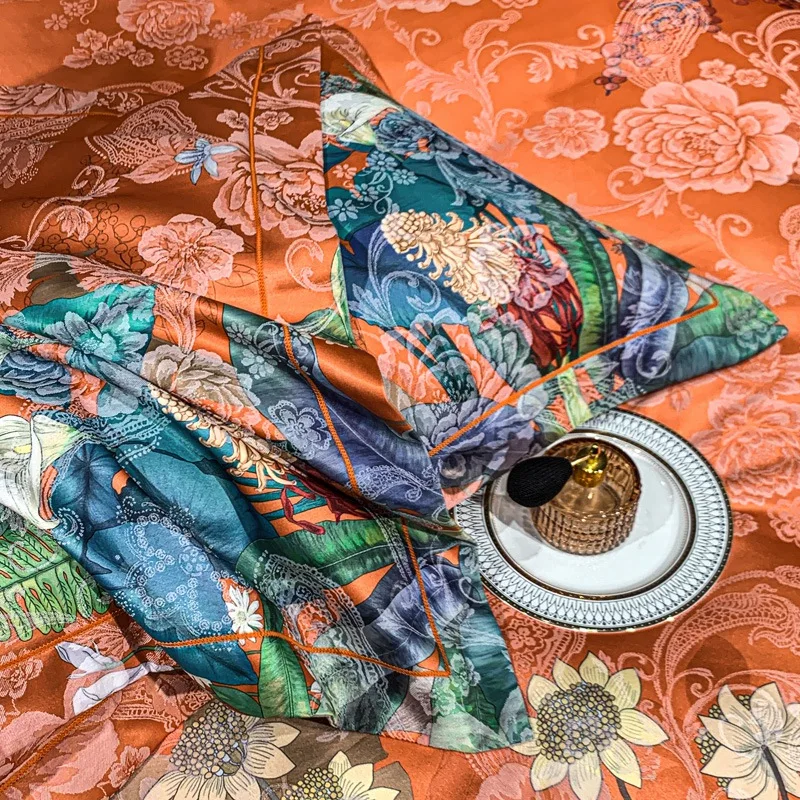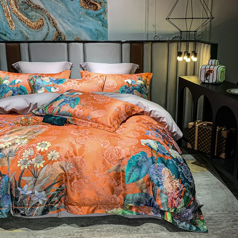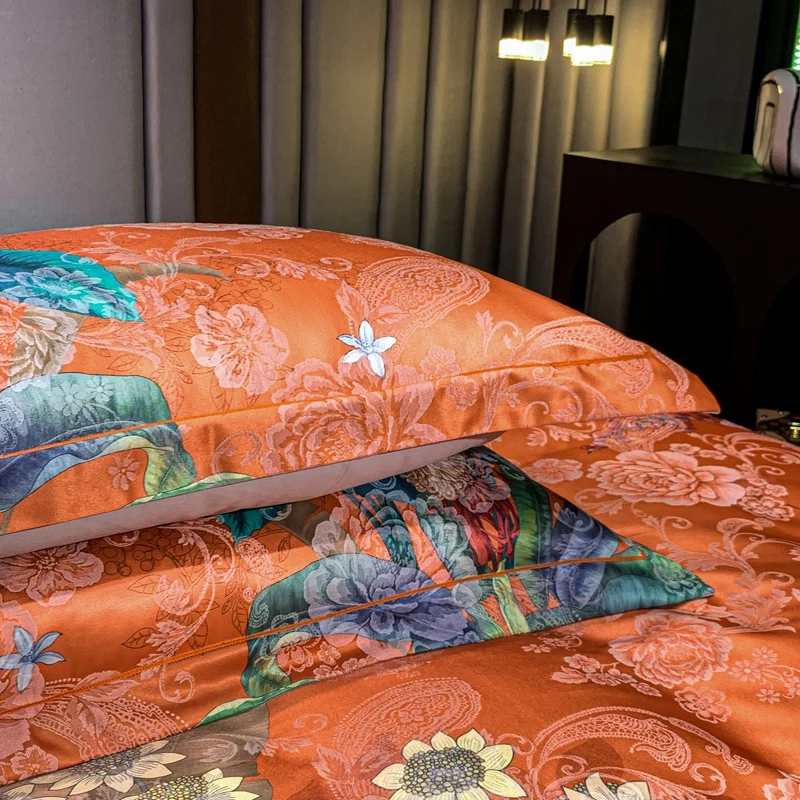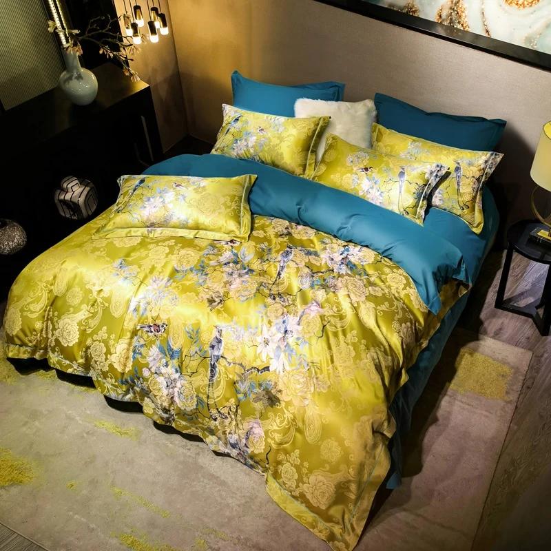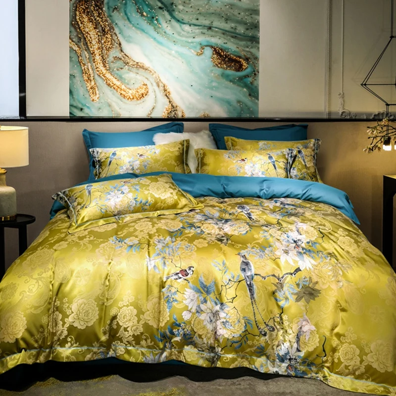 Роскошный винтажный набор постельного белья из 4 предметов с яркими птицами и цветущими золотыми пододеяльниками Королевскогокоролевского размера, шелковистый мягкий комплект постельного белья на молнии, простыня, 2 подушки