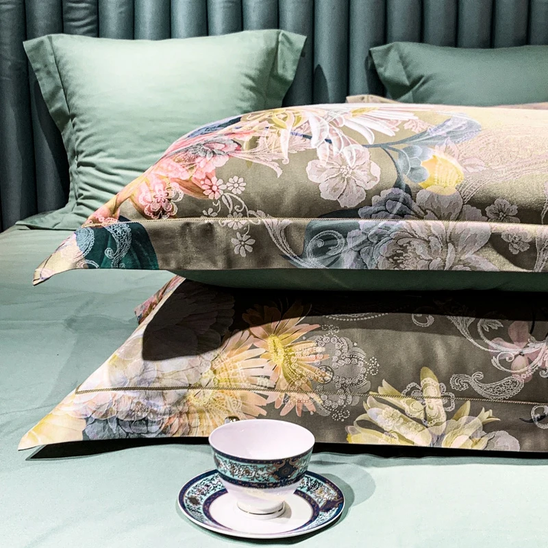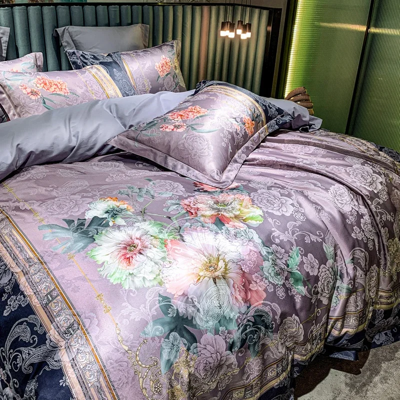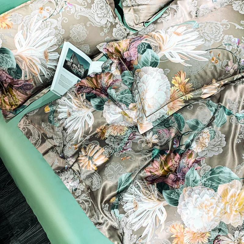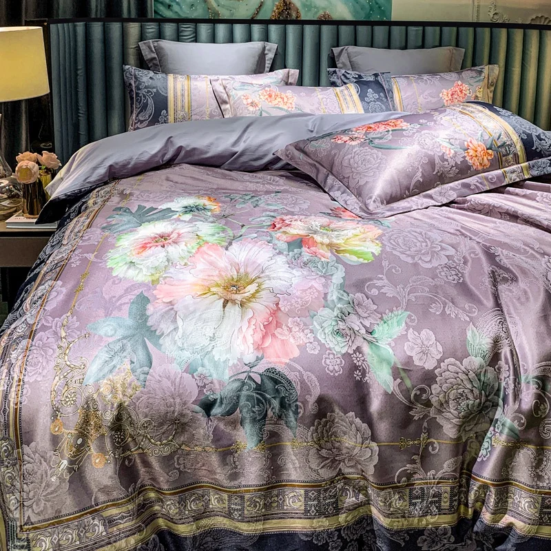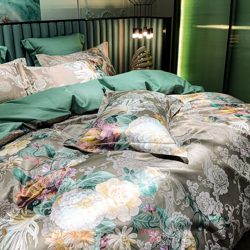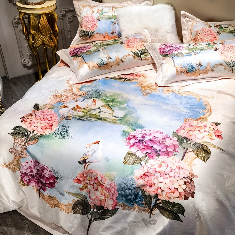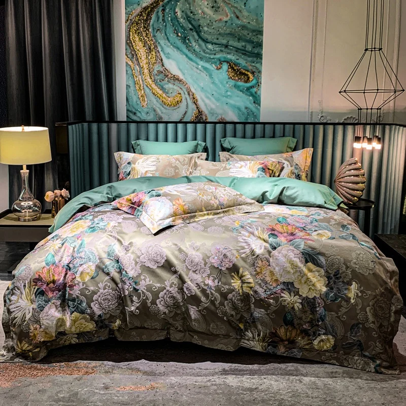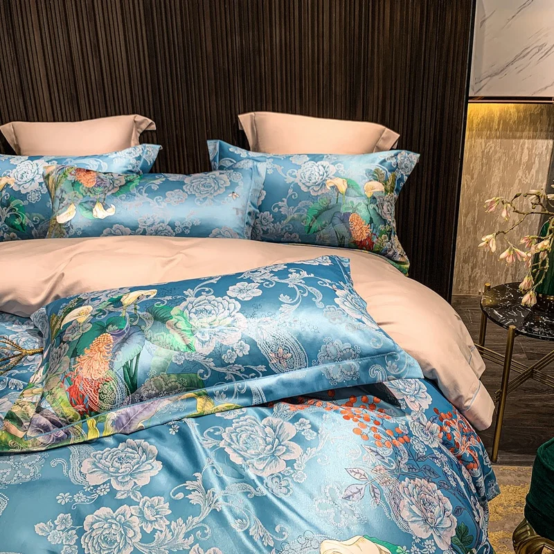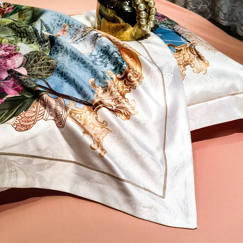 Роскошный винтажный набор постельного белья из 4 предметов с яркими птицами и цветущими золотыми пододеяльниками Королевскогокоролевского размера, шелковистый мягкий комплект постельного белья на молнии, простыня, 2 подушки