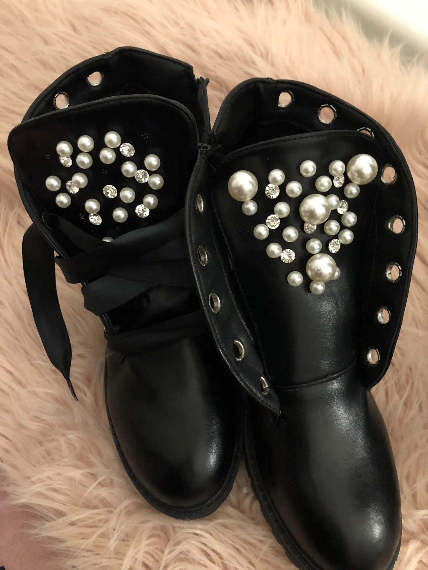 Женские короткие ботинки 2021, женские кожаные ботильоны, осенняя мотоциклетная обувь на платформе для женщин в стиле панк, размеры 36-42, зимняя обувь с жемчужными заклепками