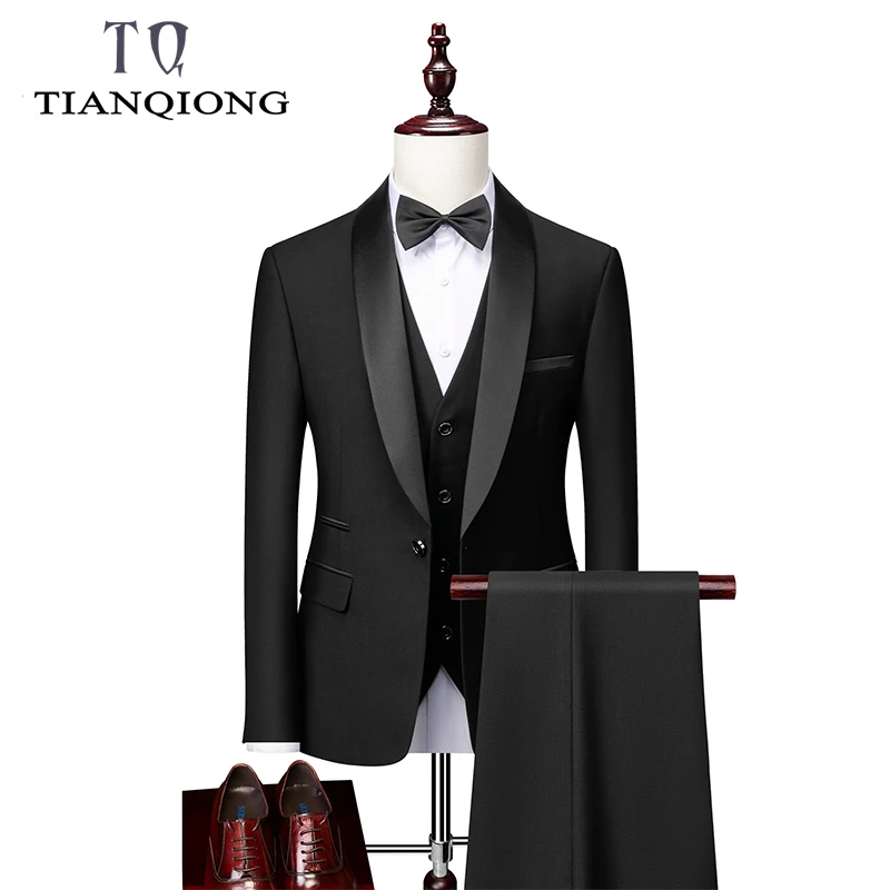 TIAN QIONG мужской костюм 2020, свадебные костюмы для мужчин, шаль воротник, 3 предмета, приталенный костюм бордового цвета, мужской Королевский синий смокинг, пиджак, S-6XL