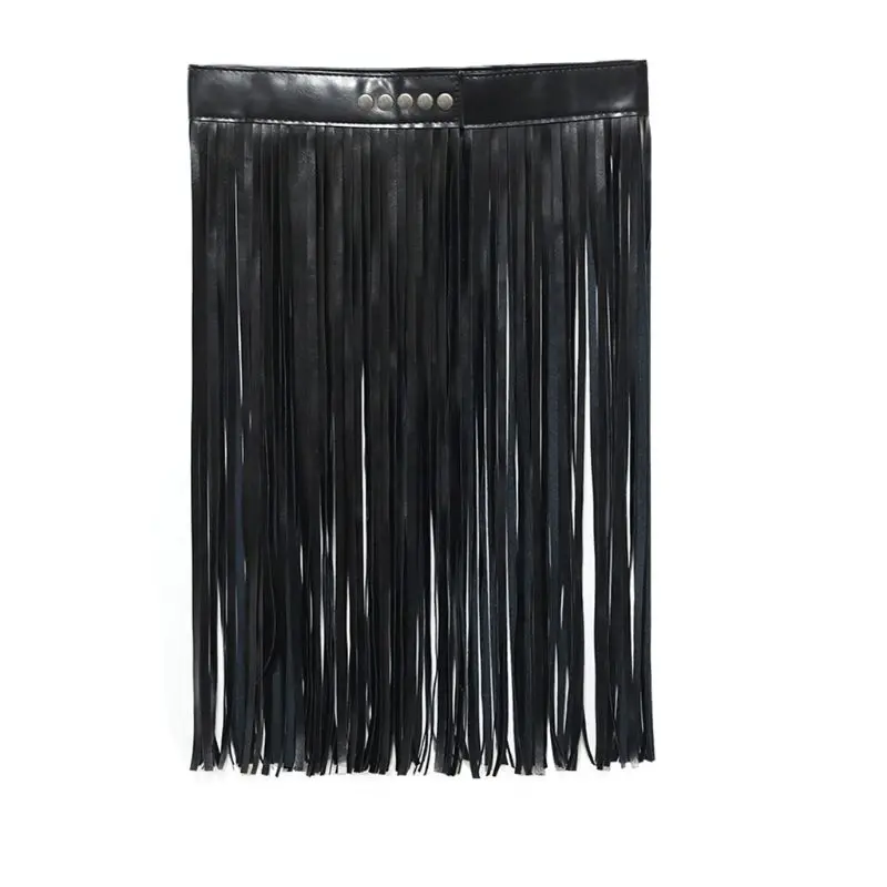 Танцевальная юбка, изготовленная из черной искусственной кожи с кисточками, не зуд, удобная, легкая и без ненормального запаха.