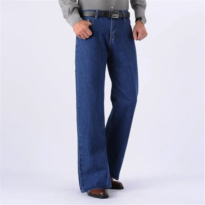 Джинсы мужские осенне-зимние, расклешенные, широкие, со слегка завышенной талией, размеры 28-40