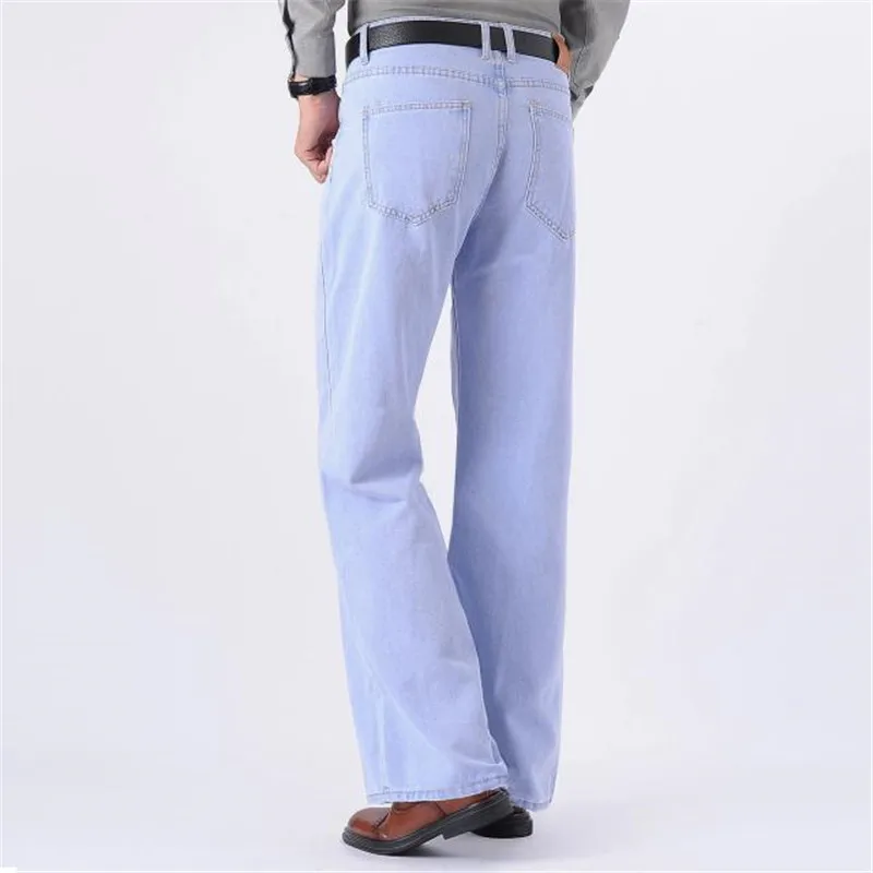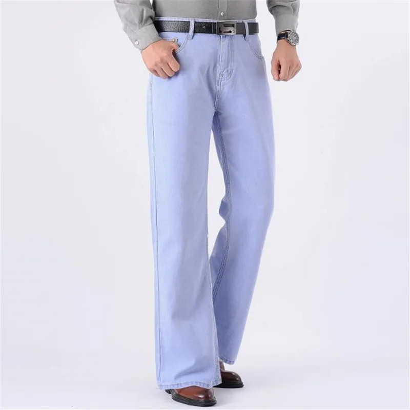 Джинсы мужские расклешенные, прямые брюки с широкими штанинами, сво...