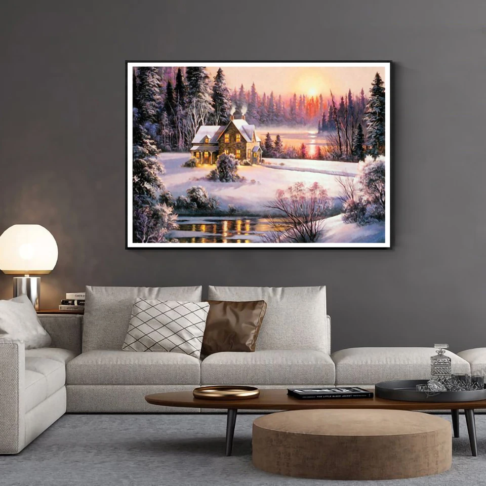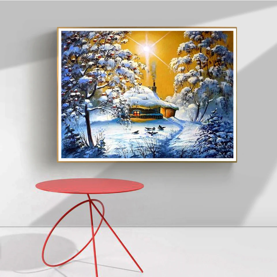 Набор для алмазной вышивки 5D сделай сам, зимний пейзаж, полноразмернаяКруглая Мозаика, украшение для подарка, вышивка крестиком