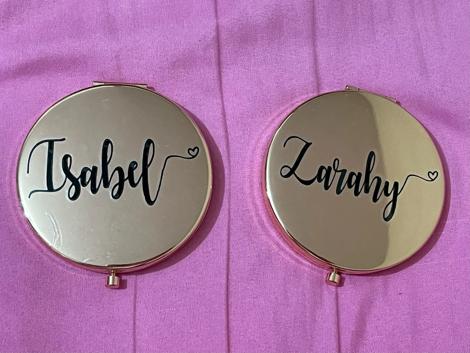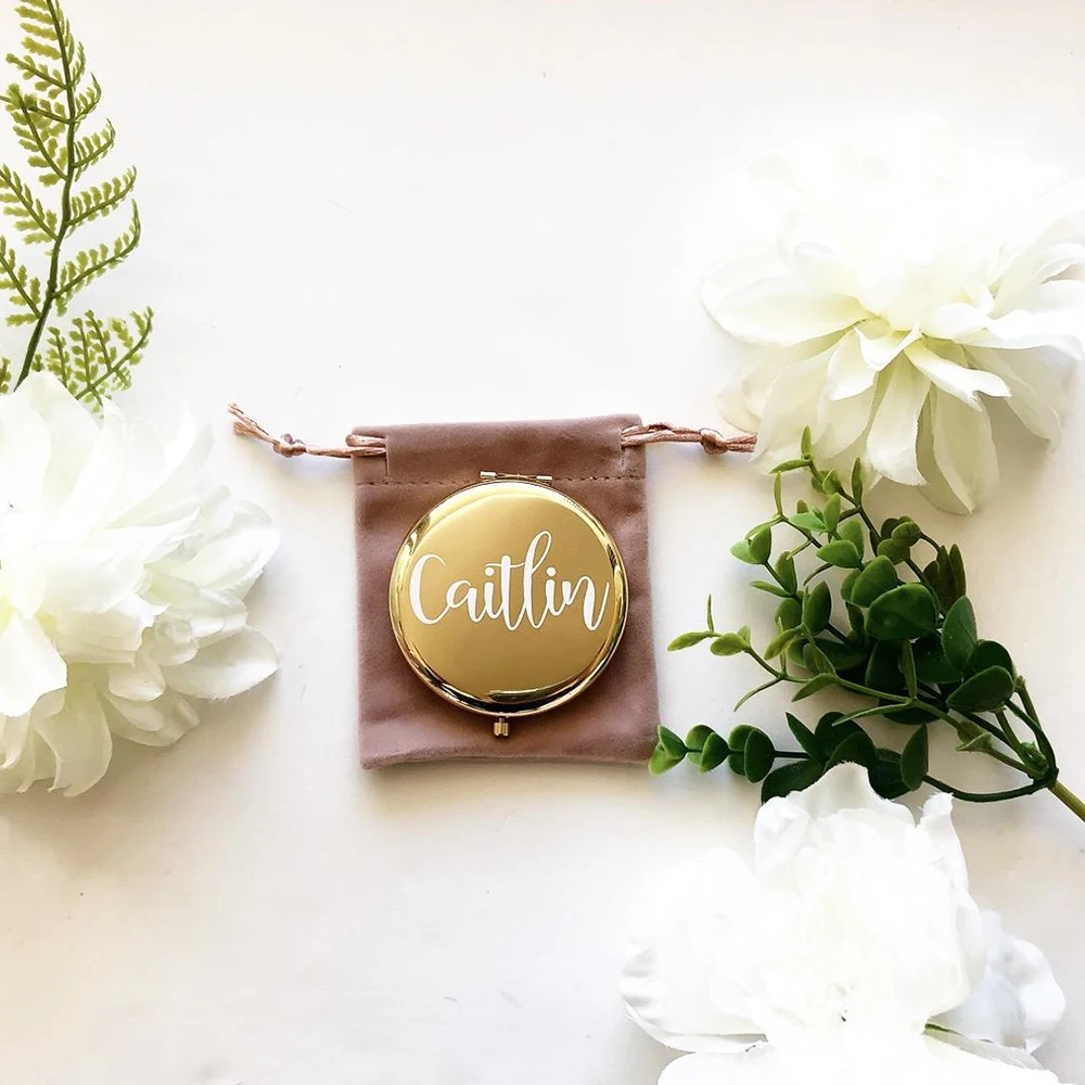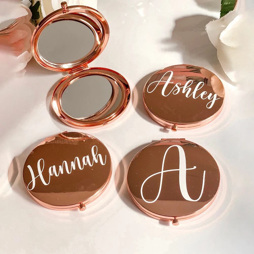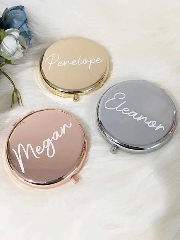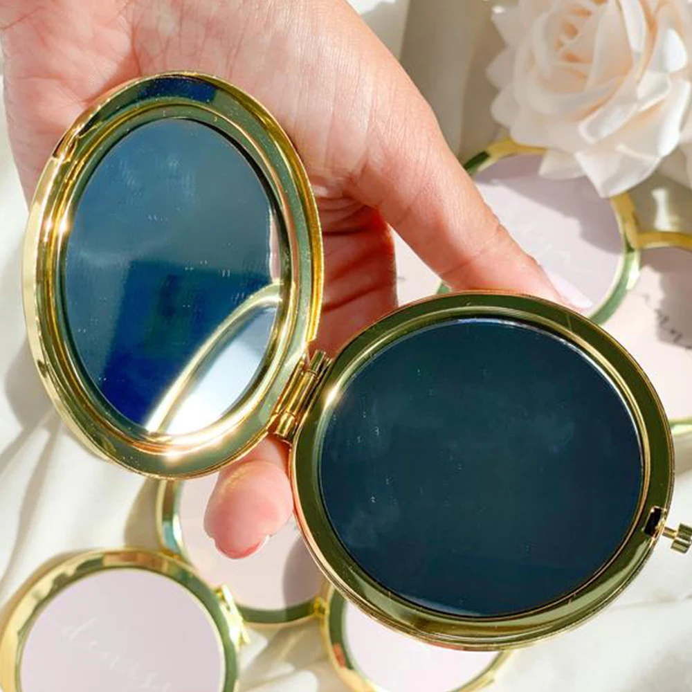 Индивидуальный подарок невесты простое металлическое компактное зеркало для макияжа Портативное двухстороннее складное зеркало свадебный и Рождественский подарок