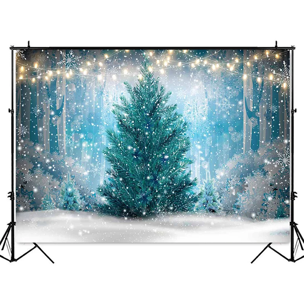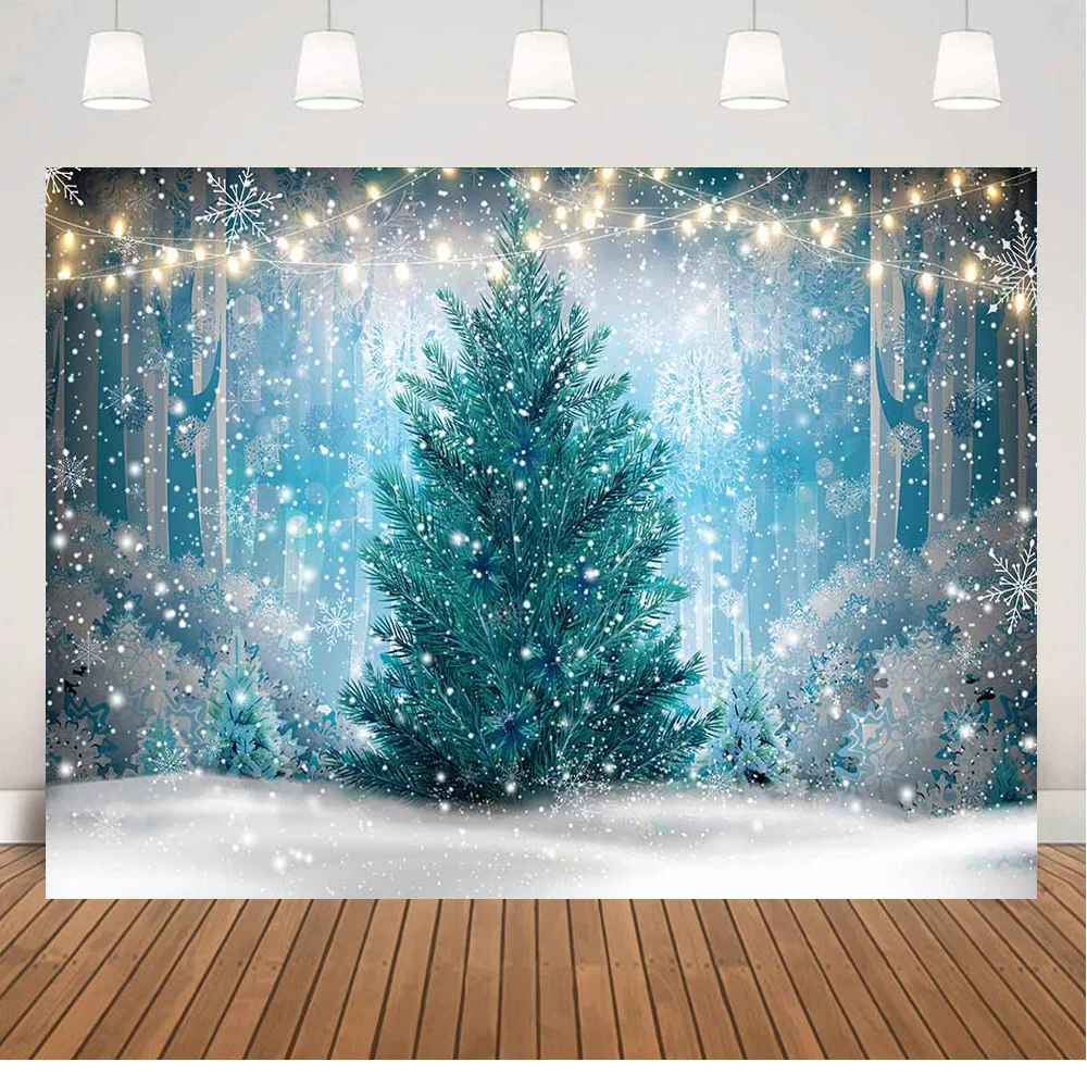 Фон для фотосъемки с зимними снежинками для студийной фотосъемки Синий Рождественский портретный фон для фотосъемки боке Блестящий сосновый лес