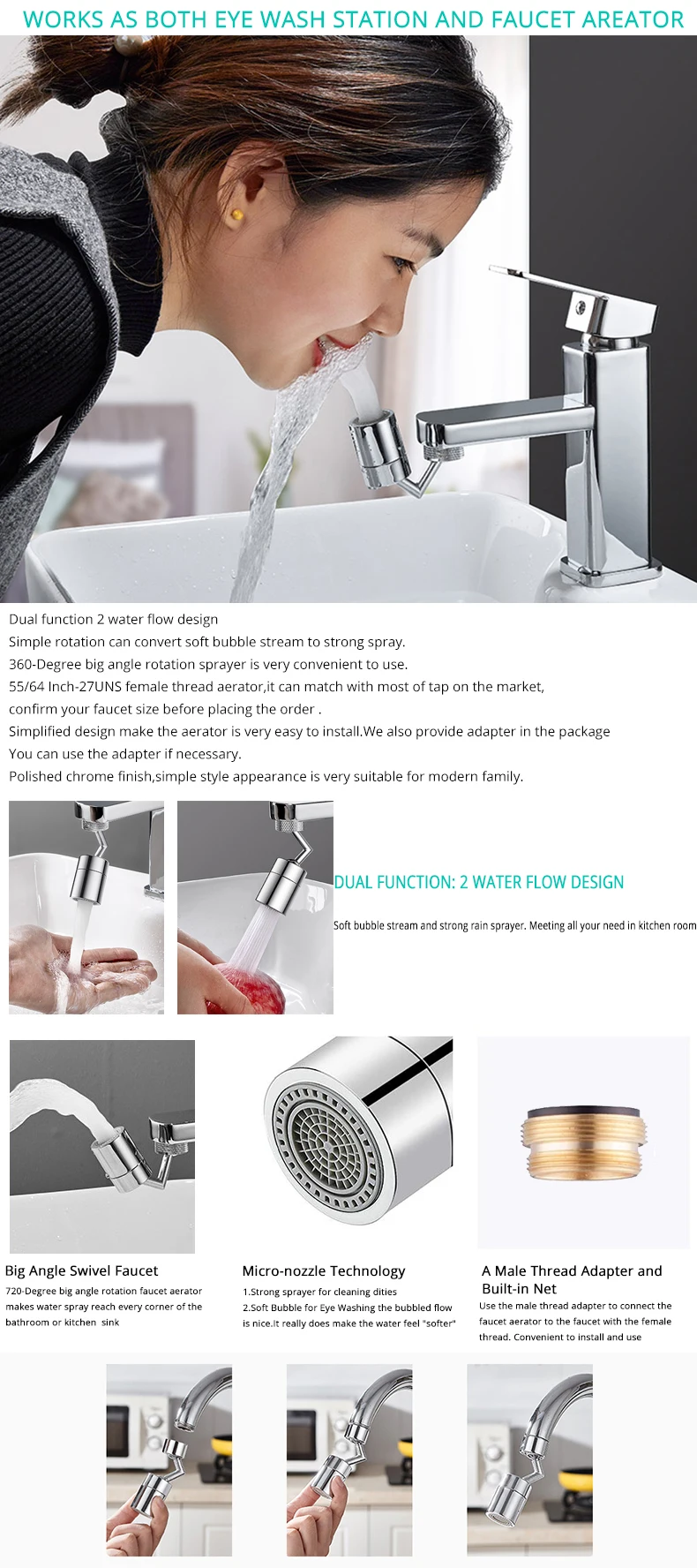 Распылитель для крана SHAI, универсальный, с поворотом на 720 градусов