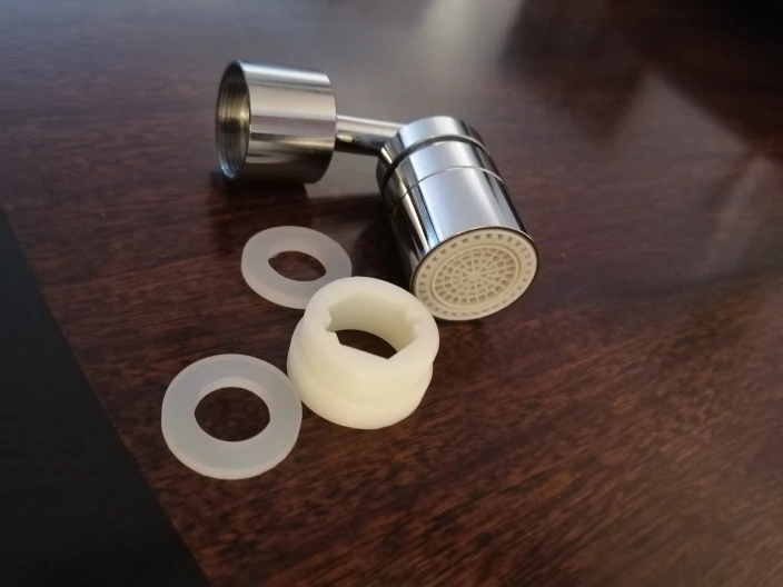 Передняя часть имеет золотой цвет, а не оригинальную часть, поэтому соединение с краном не завязывается, небольшой объем воды протекает