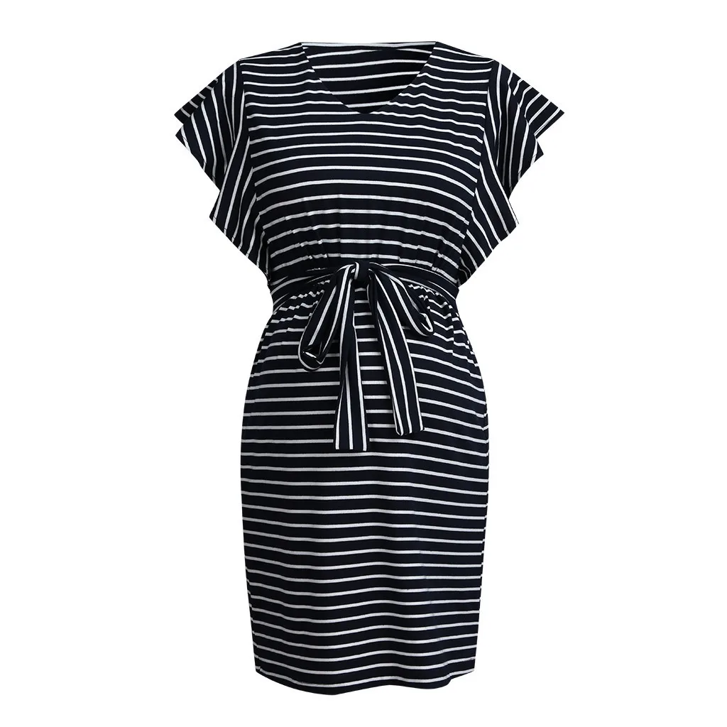 Платье для беременных с коротким рукавом, элегантное Бандажное платье в полоску, повседневная одежда для беременных