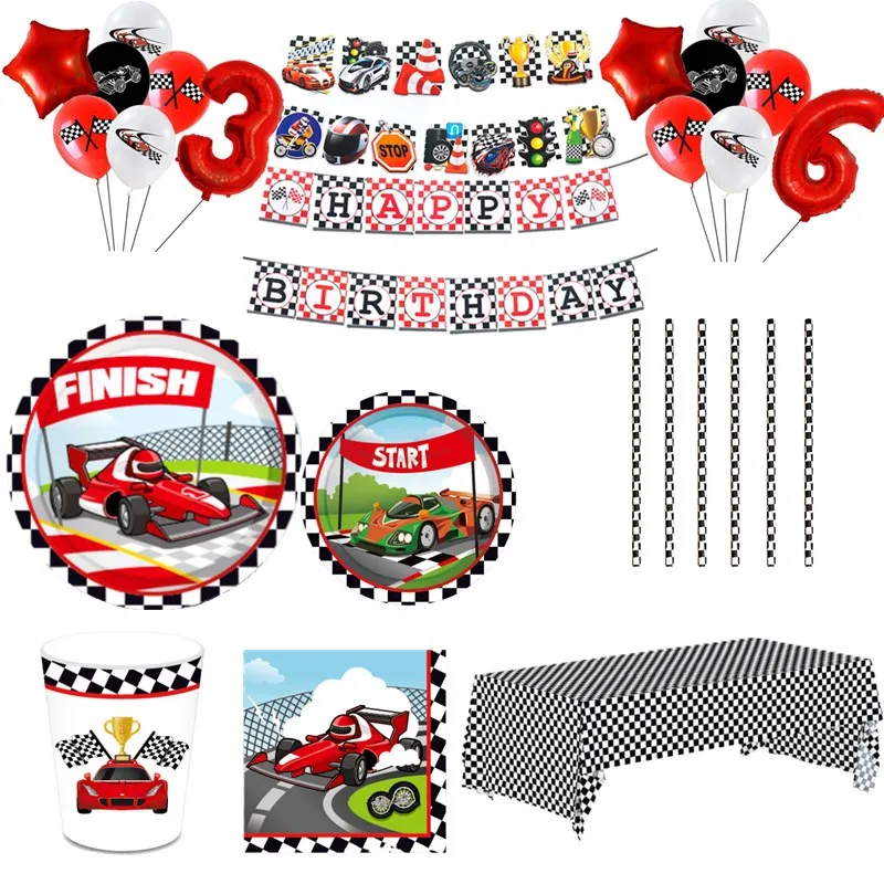 Одноразовая посуда для гоночных автомобилей, тарелка, чашки, скатер...