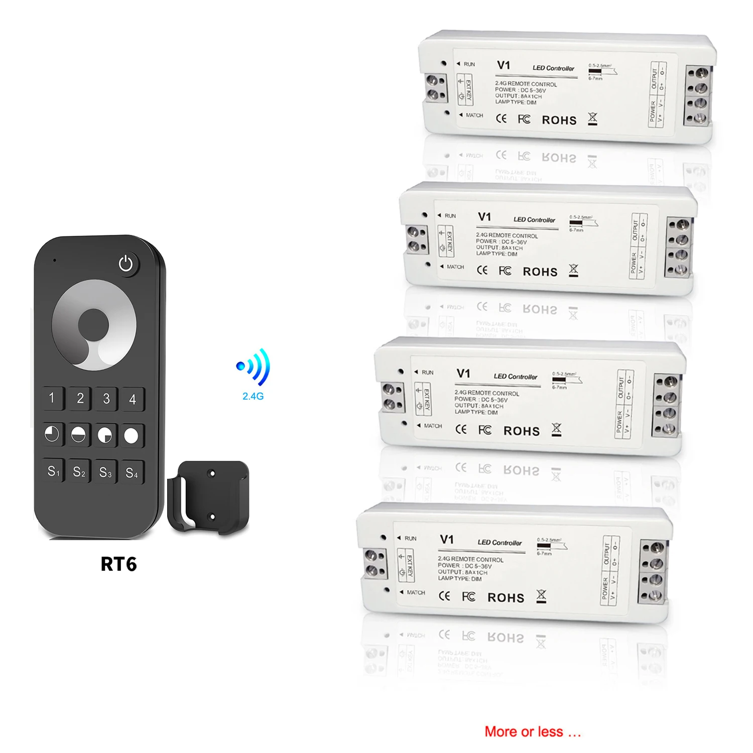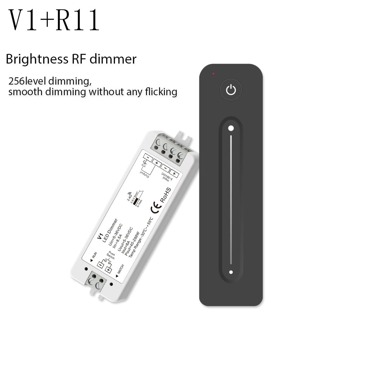 Беспроводной светодиодный регулятор яркости V1 DC 5В12В24В 8A PWM + сенсорный Радиочастотный пульт дистанционного управления для одноцветного COB 5050 3528 диммируемая Светодиодная лента