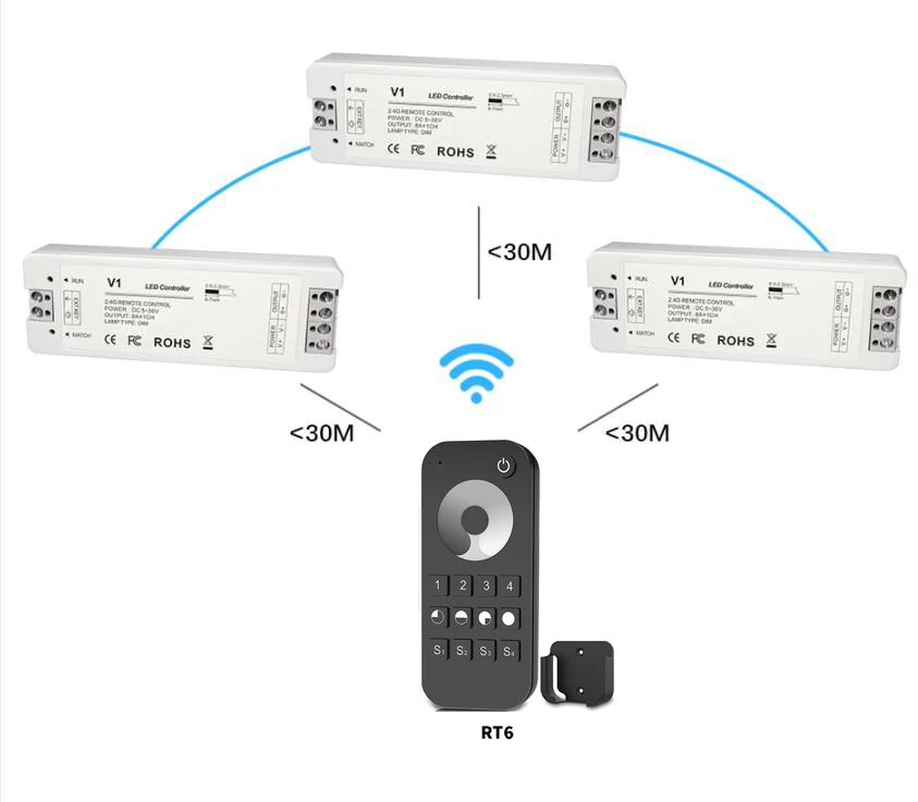 МиниСтиль RF 2,4G диммер, одноканальный постоянное напряжениеИли выход постоянного тока.Отличная совместимость с разнообразным пультом управления затемнением.256 уровней затемнения, плавное затемнение без мерцанияПодключите к внешнему кнопочному переключателю для реализации функции переключения и затемнения.АвтоФункция передачи, один приемник может передавать сигнал отПульт ДУ к другому приемнику в пределах 15 м,Таким образом, расстояние дистанционного управления может быть выше 100 м.Работает с ретранслятором мощности, чтобы развернуть выход неограниченно(Приемник) Характеристики:Название продукта: 2,4G беспроводной RF светодиодный диммер с функцией регулировки яркостиВход напряжение: 5-36VDCВыходная мощность: 5 В, макс. 40 Вт 12 В, макс. 96 Вт 24 В, макс. 192 Вт 36 В, макс. 288 ВтВыходной ток: 1CH, 8A/CHРазмер: L97 × W33 × h18 мм