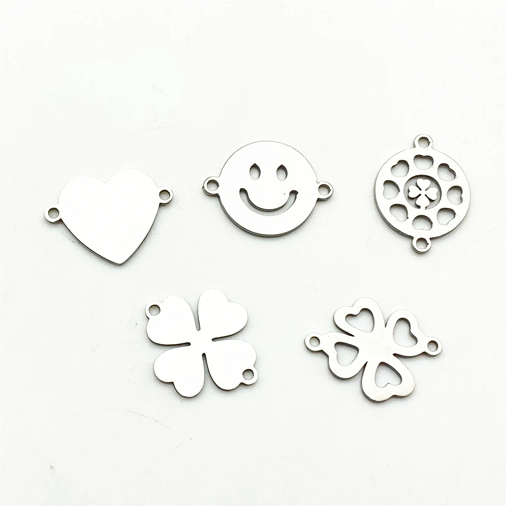 LJJAGLL 10 шт. 17*15 мм Клевер сердце печать 100% нержавеющая сталь смайлик Шарм Подвеска ювелирные изделия DIY Ожерелье Изготовление
