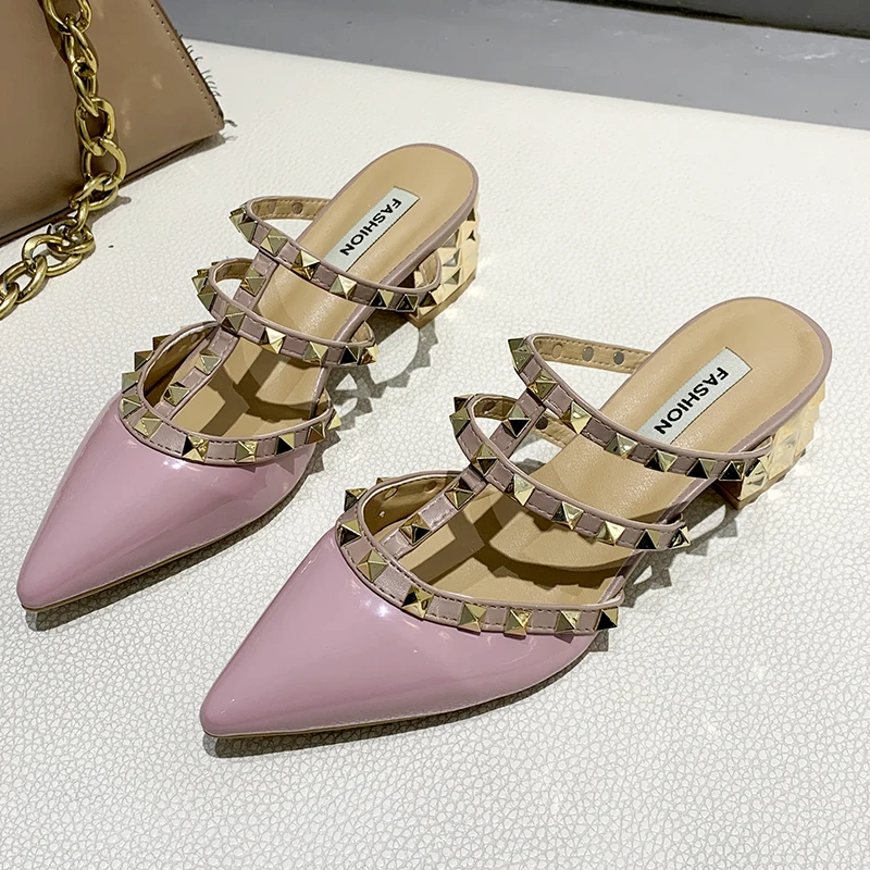 Женский набор тапочек на квадратном каблуке, фирменный дизайн 2020, модный роскошный набор тапочек с Т-образным ремешком и заклепками, обувь на плоской подошве, женская обувь с скорпионом