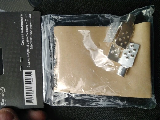 Соединительный комплект для Инфракрасного плёночного тёплого пола, 2 медных луженых зажима и изоляция. Для одной полосы плёнки