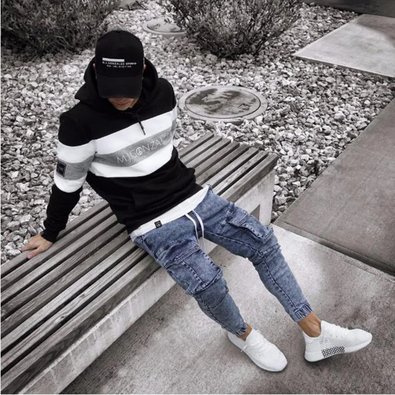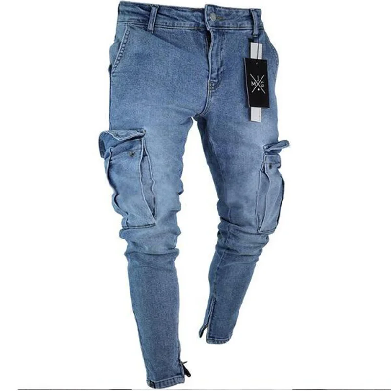 Джинсы мужские Стрейчевые однотонные, с большими карманами, весна-осень