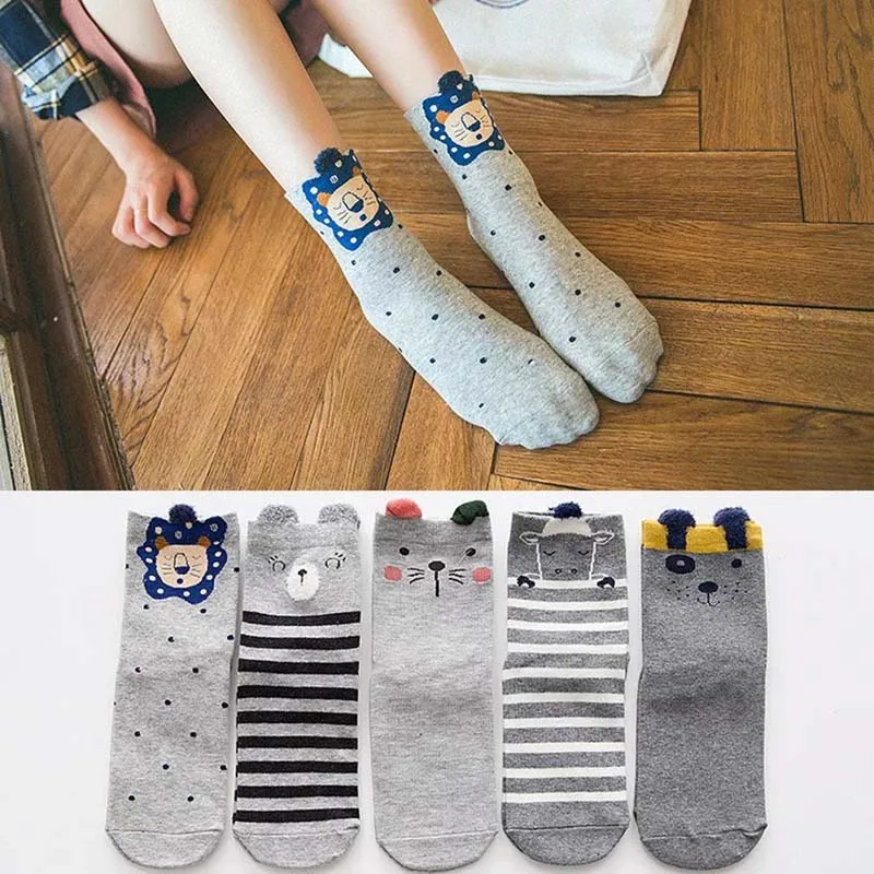 Набор женских носков, 5 пар в упаковке, Новое поступление, носки из пряжи с рисунком стерео ушей, веселые Смешные хлопковые милые носки с мультяшными животными