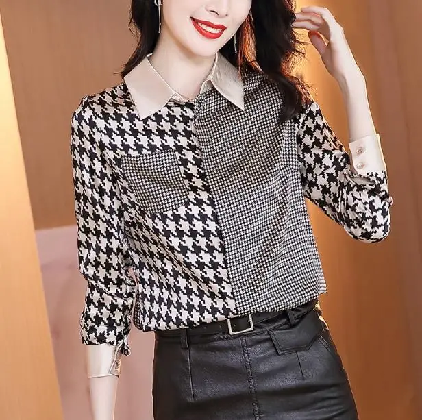 2021 элегантные весенние туфли с ремешками Офисные женские туфли женские твидовые рубашки с длинным рукавом для женщин Осенние блузки Blusas De Mujer; Большие размеры